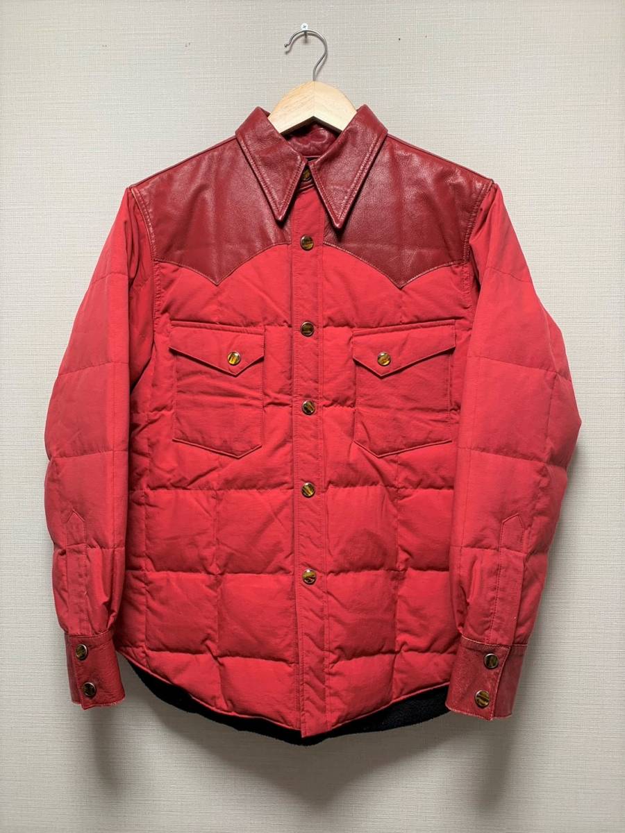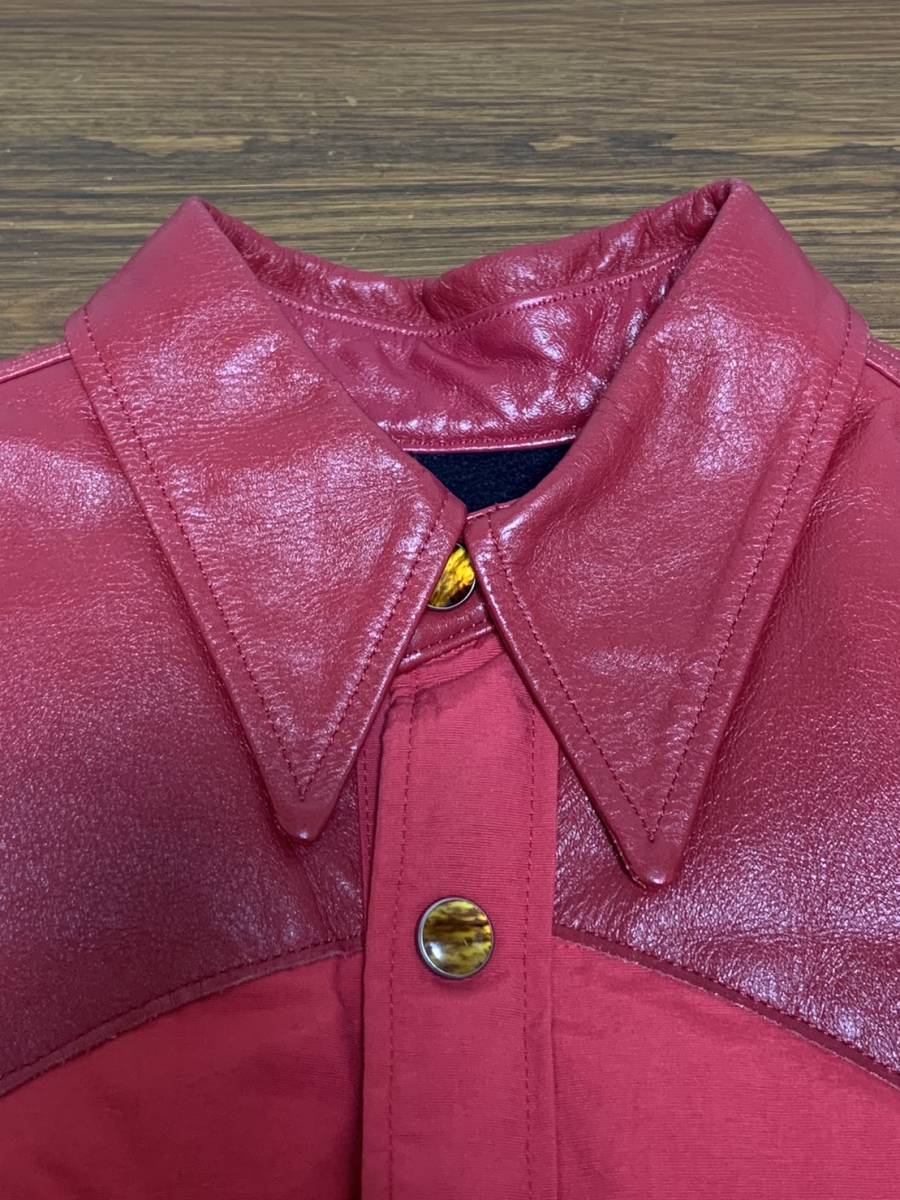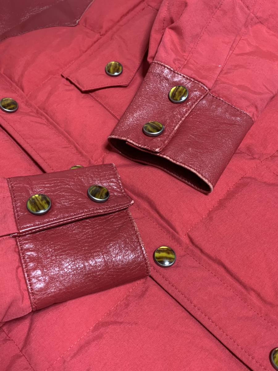 [THE FLAT HEAD] レザー切替 キルティング ダウンシャツジャケット 36 牛革 日本製 レッド 赤 フラットヘッド