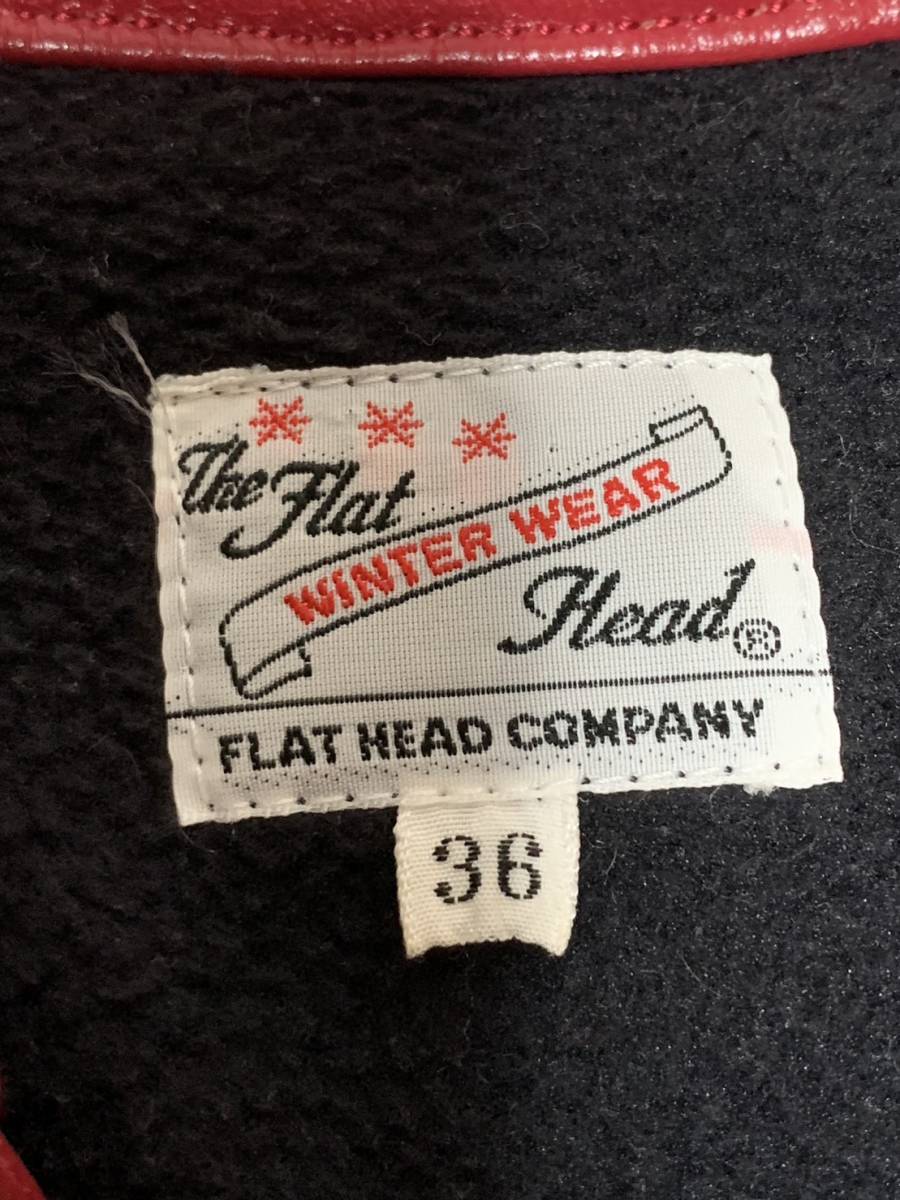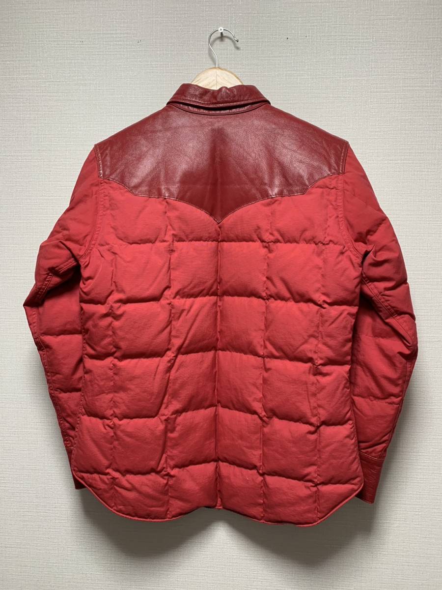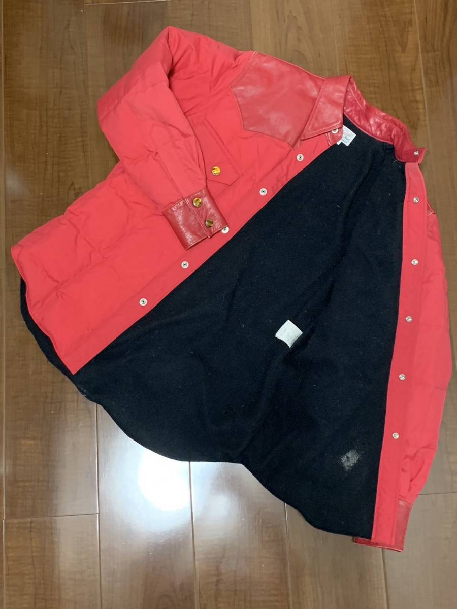 [THE FLAT HEAD] レザー切替 キルティング ダウンシャツジャケット 36 牛革 日本製 レッド 赤 フラットヘッド