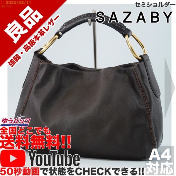 送料無料★即決★YouTubeアリ★ 参考定価35000円 良品 サザビー SAZABY エートート セミショルダー オールレザー バッグ