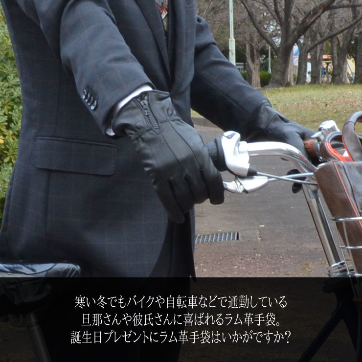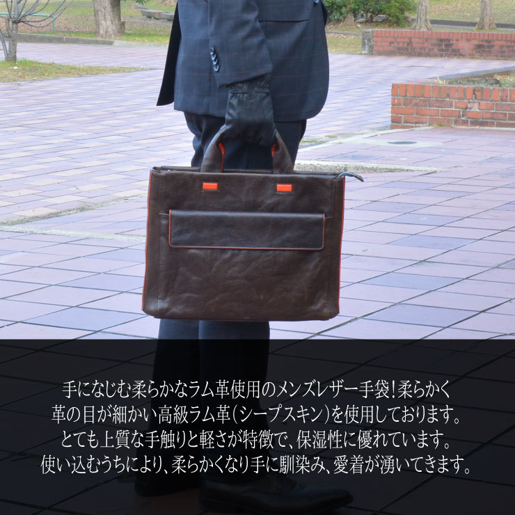 スーツスタイルによく合い、手になじむ柔らかなラム革使用の男性用レザー手袋!柔らかく革の目が細かい高級ラム革(シープスキン)を使用しております。とても上質な手触りと軽さが特徴で、保湿性に優れています。使い込むうちにより、柔らかくなり手に馴染み、愛着が湧いてきます。本商品は羊革を使用しているため、革にキズや汚れが等が若干ございますが、天然素材ならではのものになります。