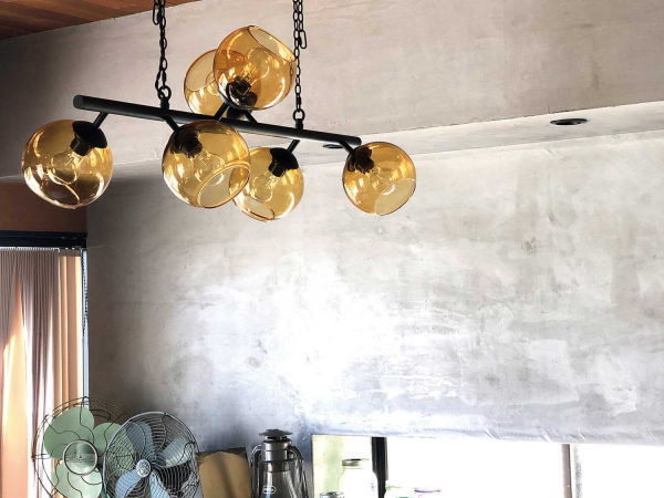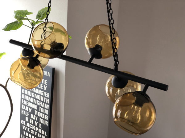 | アンバー塗装を施したガラスシェードを組み合わせた6灯ペンダントライト。 ヴィンテージとヨーロピアンをうまく融合させてたデザインで、ダイニングにも合わせやすいシルエットです。 インダストリアルな雰囲気から西海岸ブルックリンスタイルやミッドセンチュリーまでよく合います。 *取り付けは引っ掛けシーリングです。 |