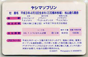 | ★まねき馬カード 馬勝った ヤシマソブリン NNO (競走の-走-) 東ハト 袋なし 開封品 AVANTI 坂井千明 ラジオたんぱ賞 写真 画像 競馬カード 即決 | |