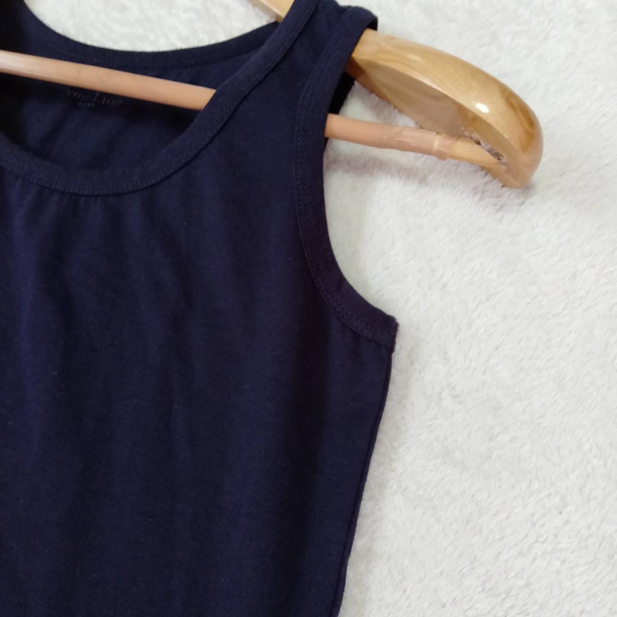 Demi-Luxe BEAMS デミルクス ビームス タンクトップ トップス インナー ノースリーブ 無地 ラウンドネック ショート丈 ダークブルー YFF56