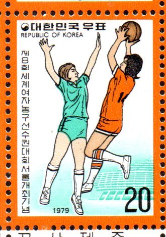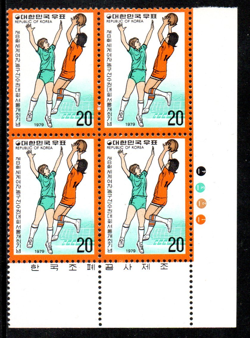 切手 CM 銘版付 韓国 1979年 第8回世界女子バスケットボール大会 田型 カラーマーク