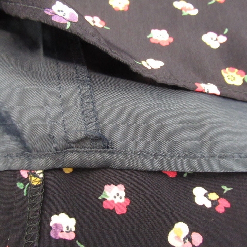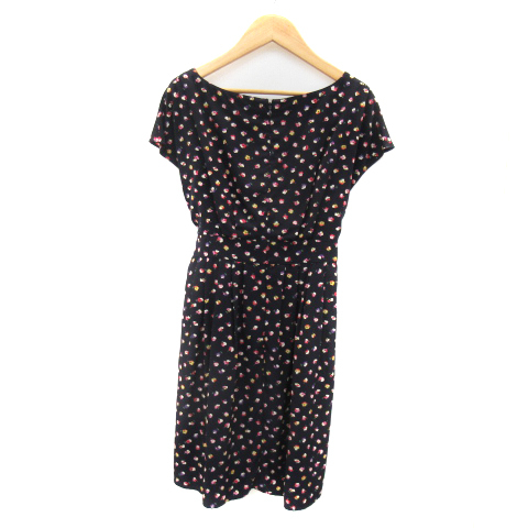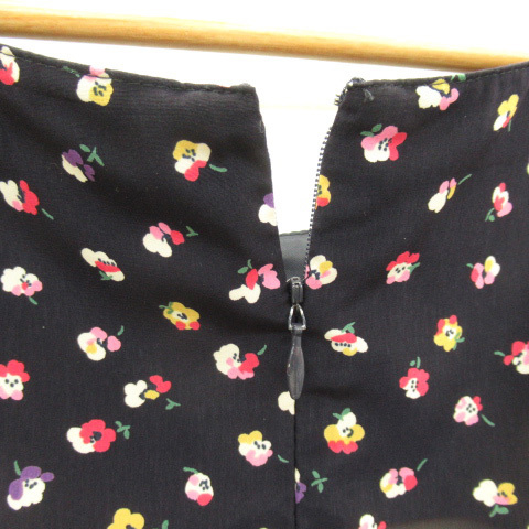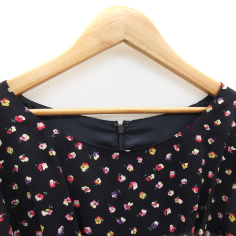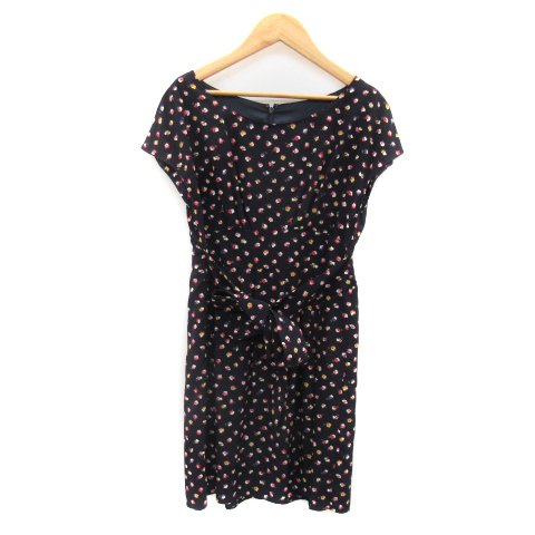 ボンメルスリー ワンピース ミニ丈 フレアスリーブ ラウンドネック ウエストリボン 花柄 36 マルチカラー 紺 ネイビー /YK36 レディース