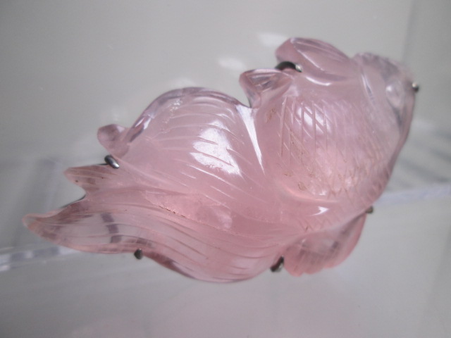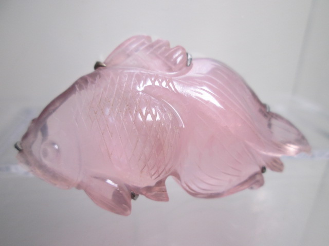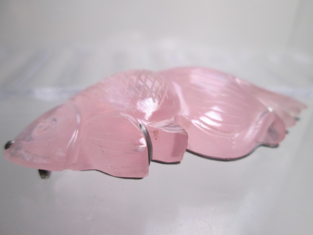 【江月】アンティーク・紅水晶ローズクォーツの金魚の帯留め 18,9g