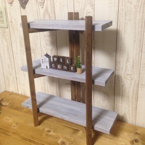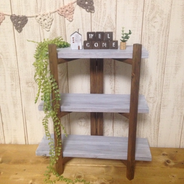 ハンドメイド☆ラダー飾り棚はしごシェルフ☆ナチュラルインテリア家具雑貨☆折りたたみ可能イベント什器やキャンプにも