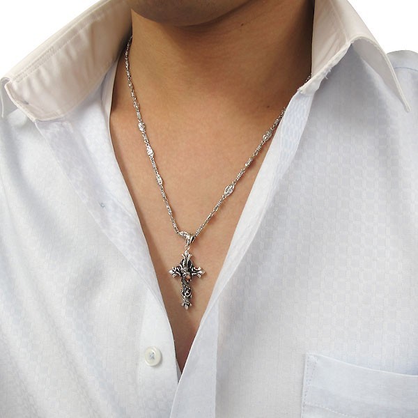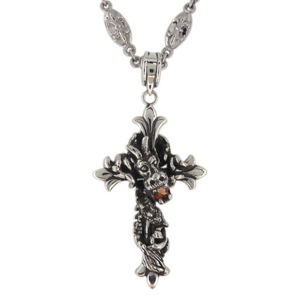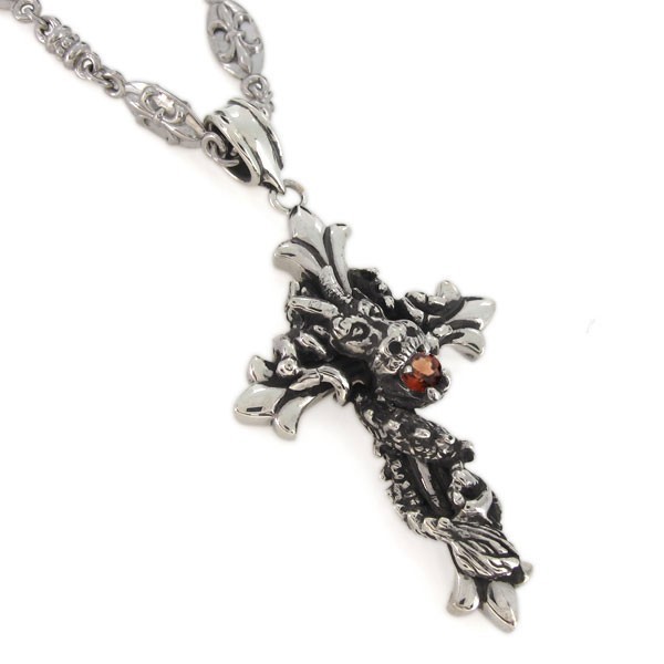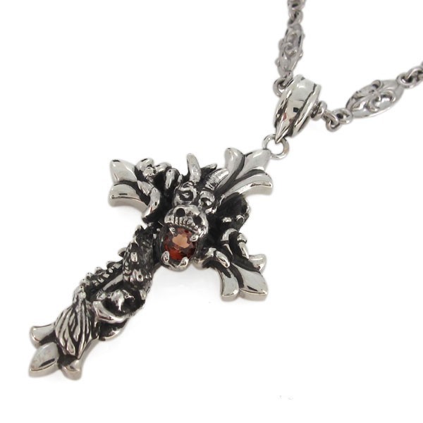 1月誕生石ガーネットを使用したシルバー製の、クロス(十字架)&ドラゴン(龍)モチーフメンズネックレス・ペンダントです。