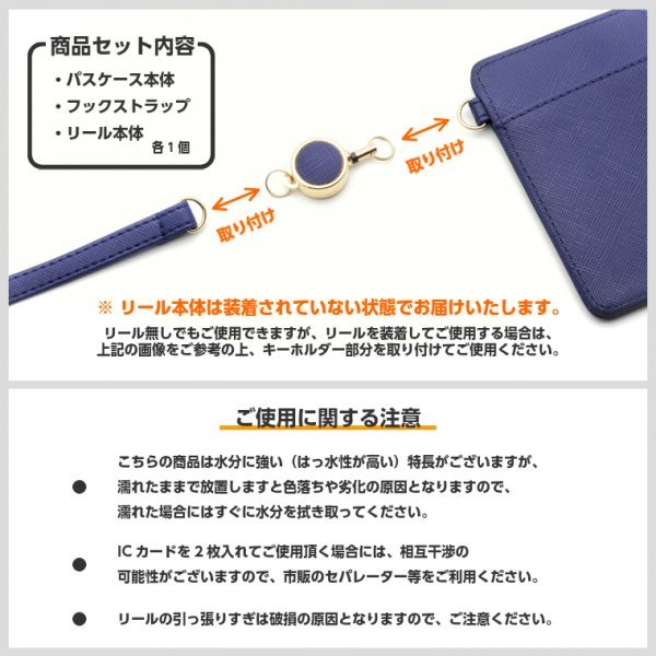 ・お送りする商品はパスケース・リール・ストラップのみです。写真にあるカード類等は付いておりません。