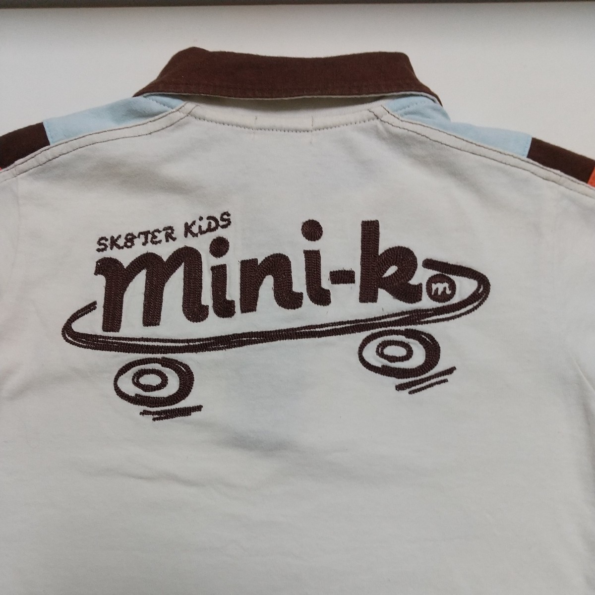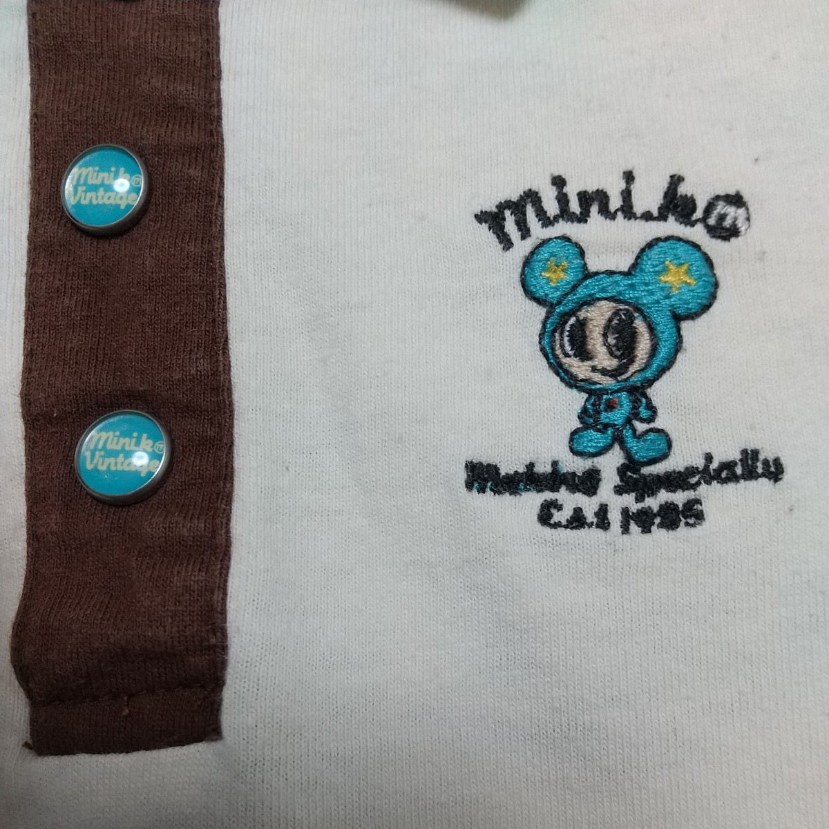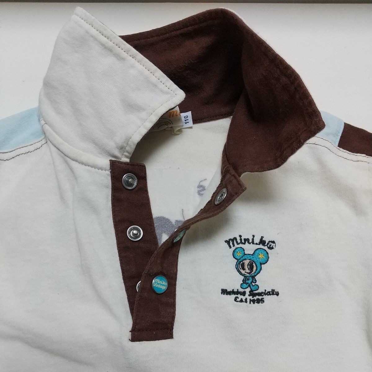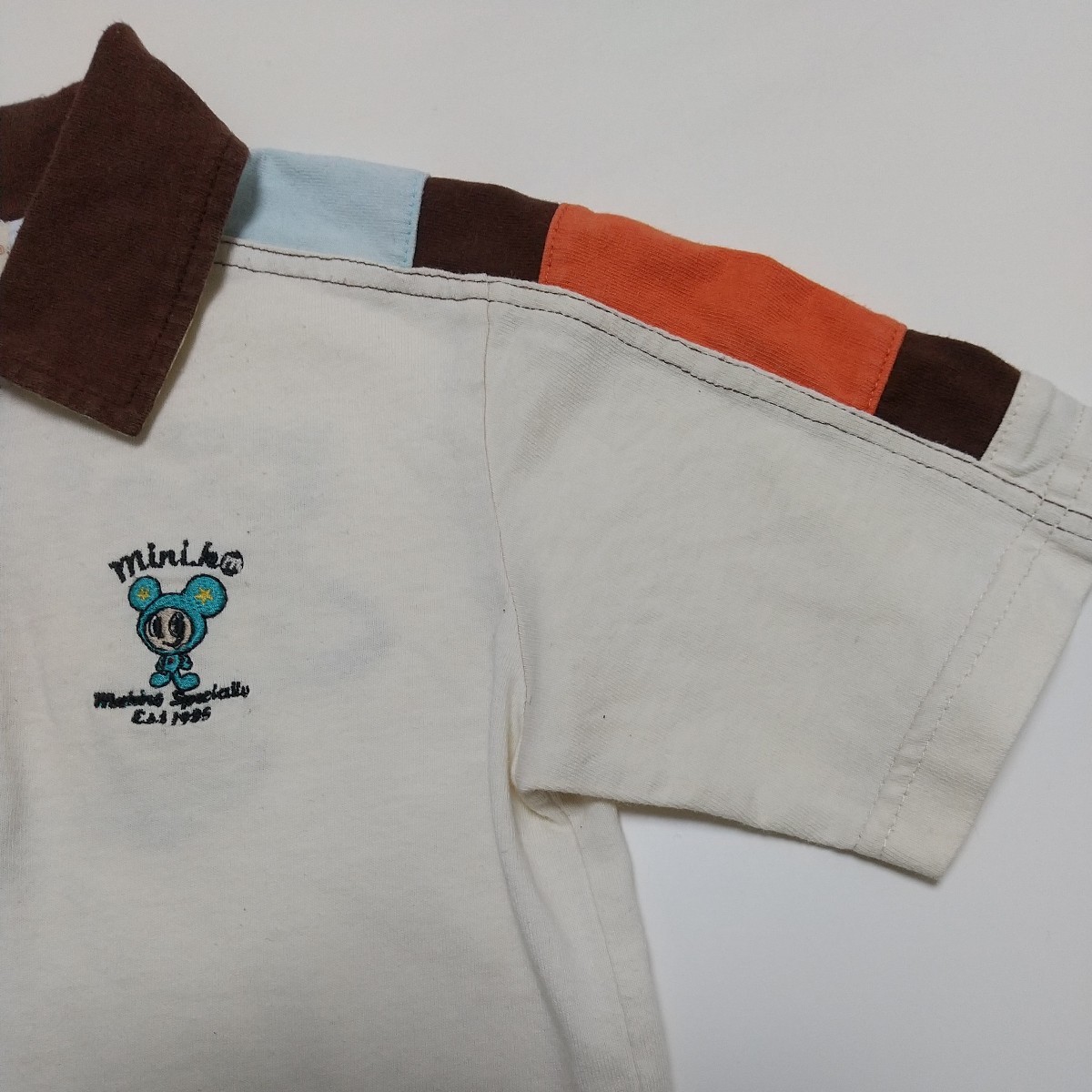 一見、シンプルなポロシャツですが、前見頃、後身頃の刺繍や衿と肩の部分の絶妙な配色、スナップもオリジナルでオシャレです。刺繍部分はあて布付き。