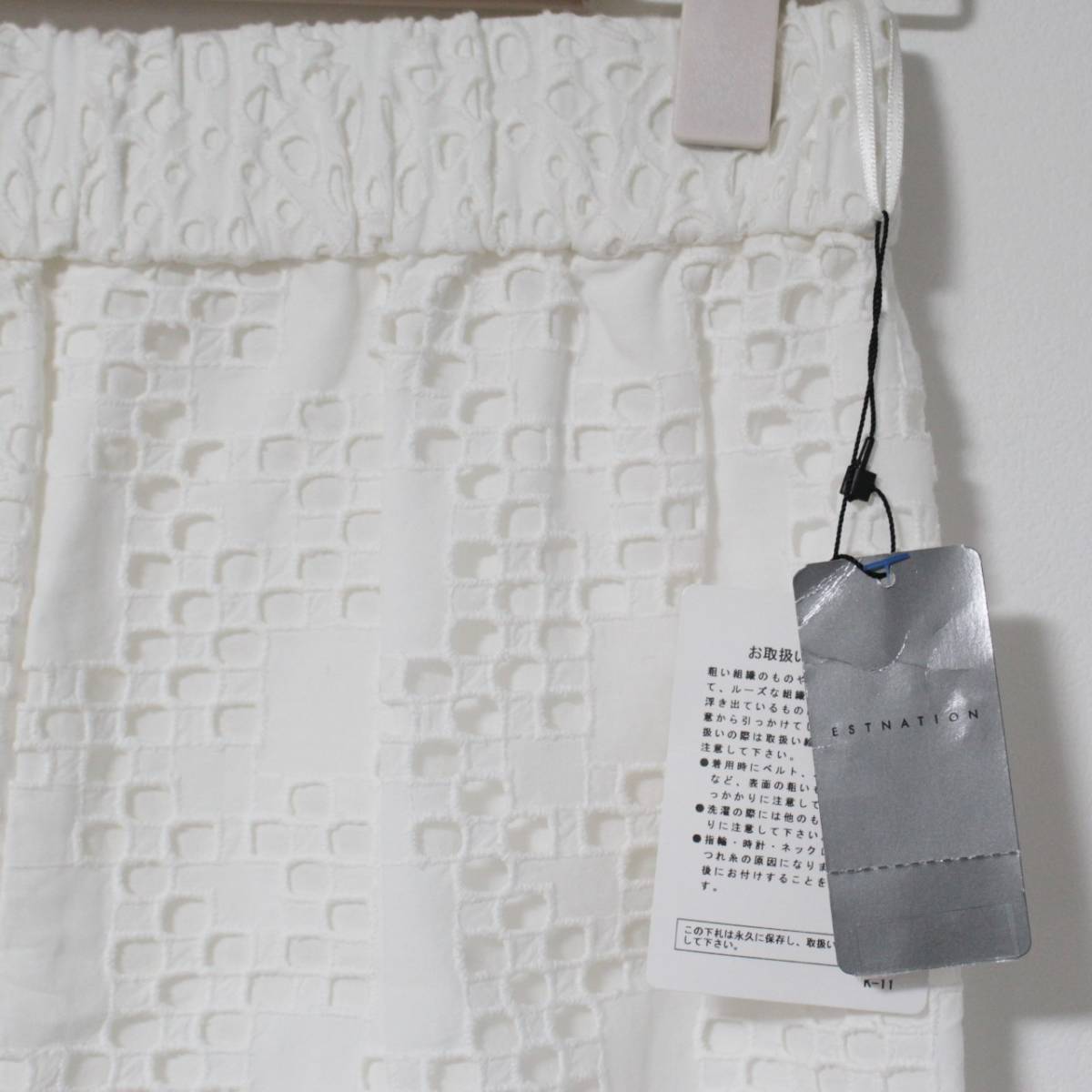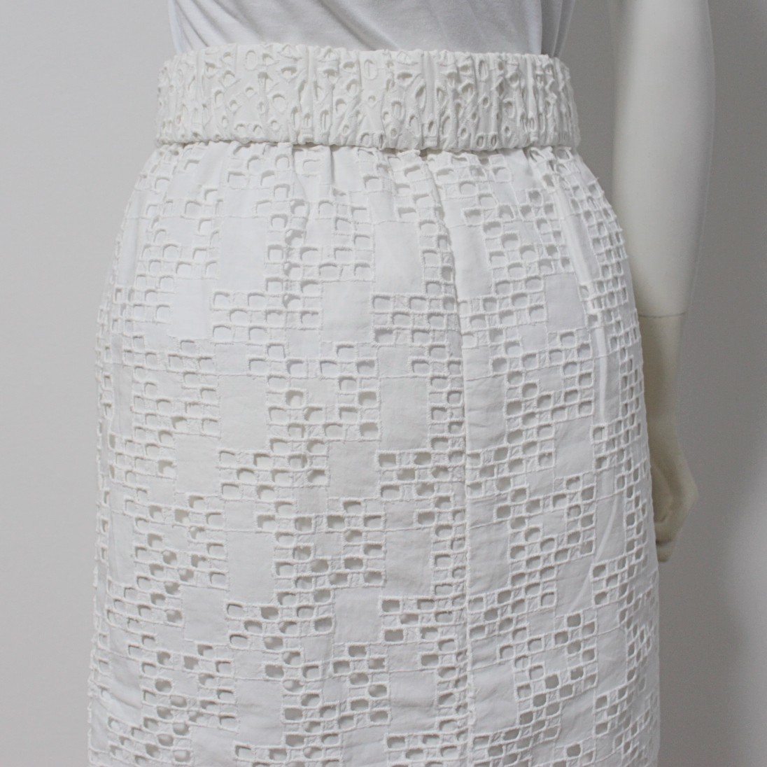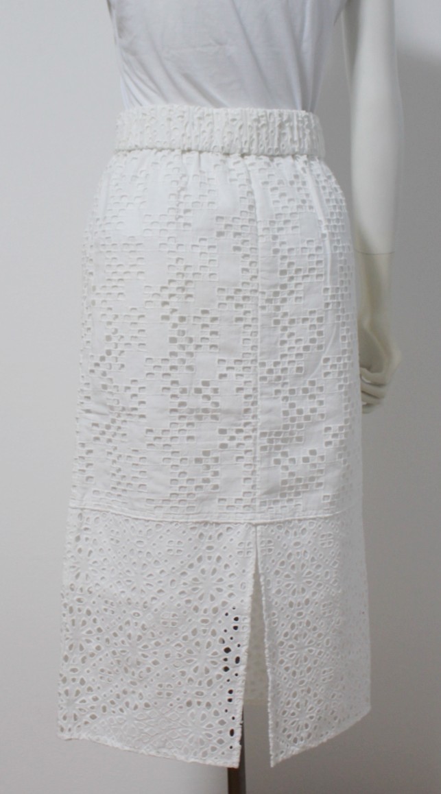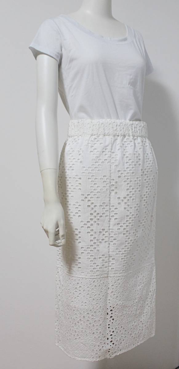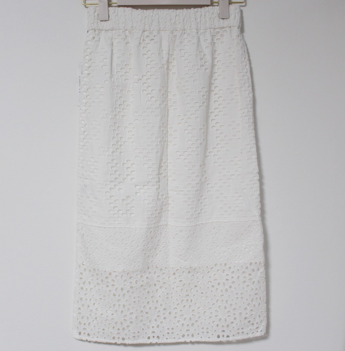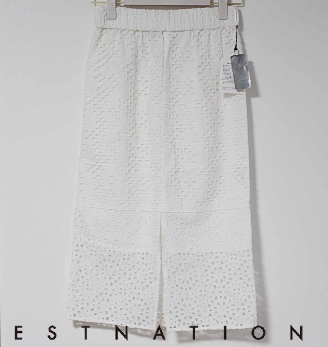 | 新品 エストネーション 刺繍穴開きデザイン スリット スカート ウエスト66‐77cm(36) 白 K1650 |