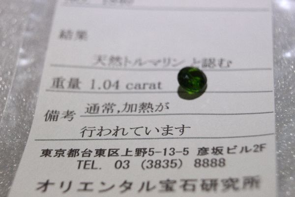 1.04ct 天然トルマリン マダガスカル産★ソーティング付き | ||