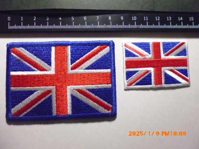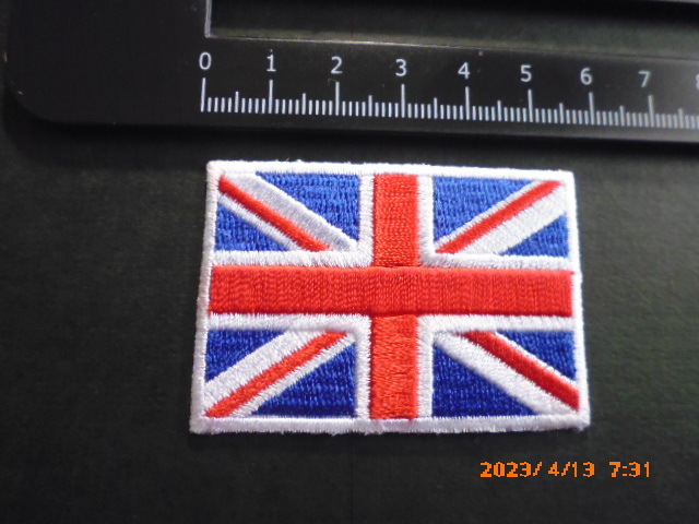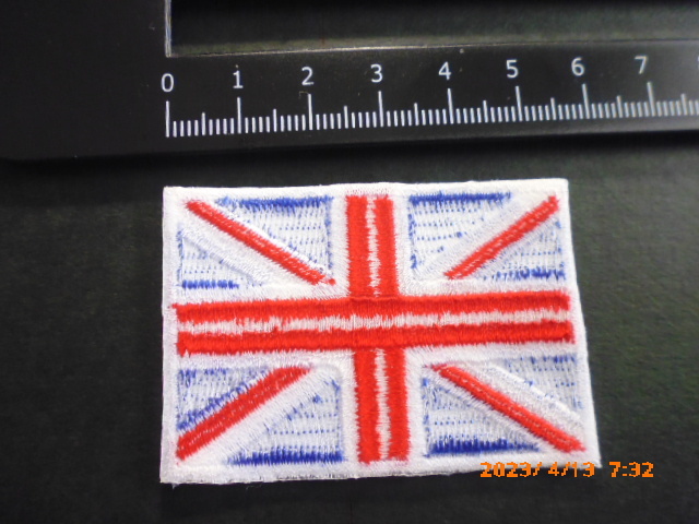 英国旗(イギリス).UK.のワッペン 〈小) 5.5cm x 3.5cmサイズ 裏にはアイロンの熱でつく糊付。 もう最後。 この1枚しか有りません。ユニフォーム、帽子等に如何でしょうか。