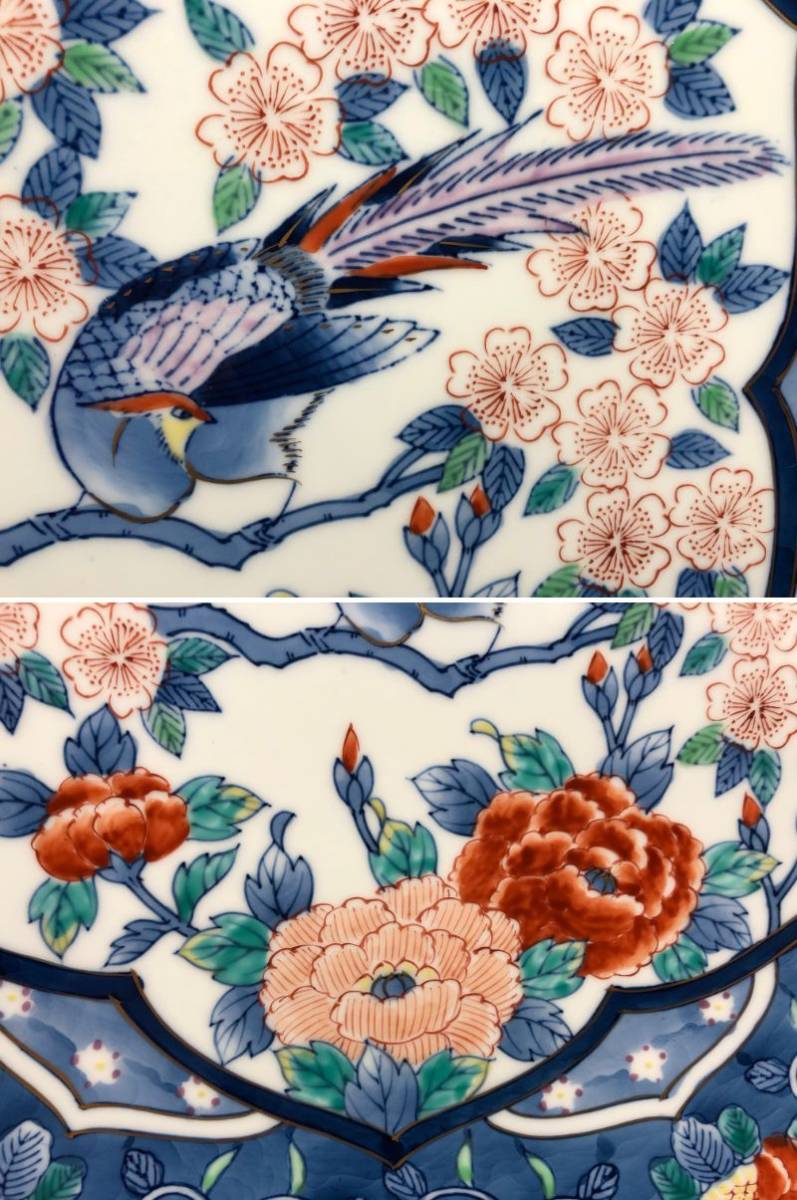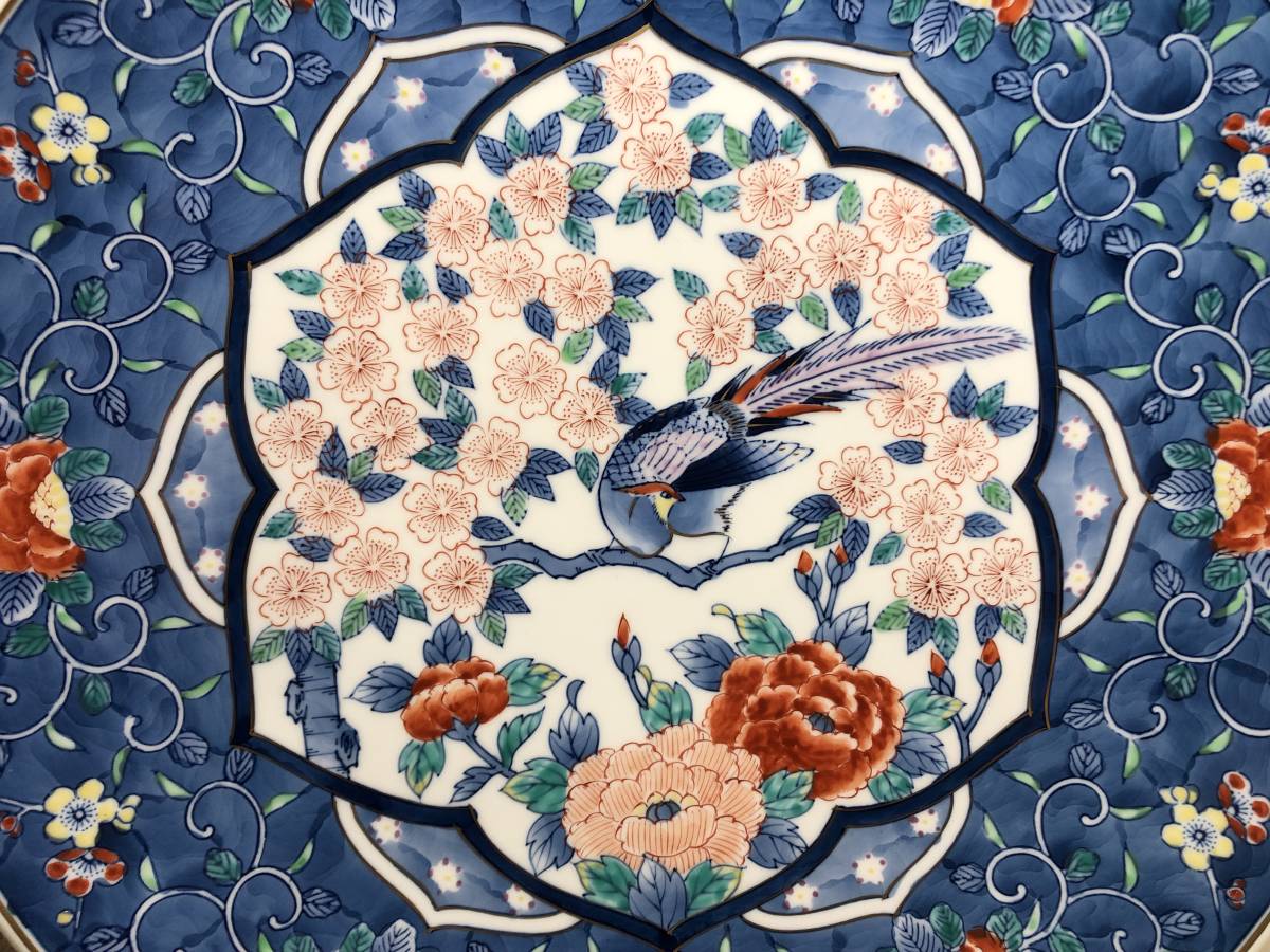 有田焼 飾皿 峰山作 渕唐草梅花鳥