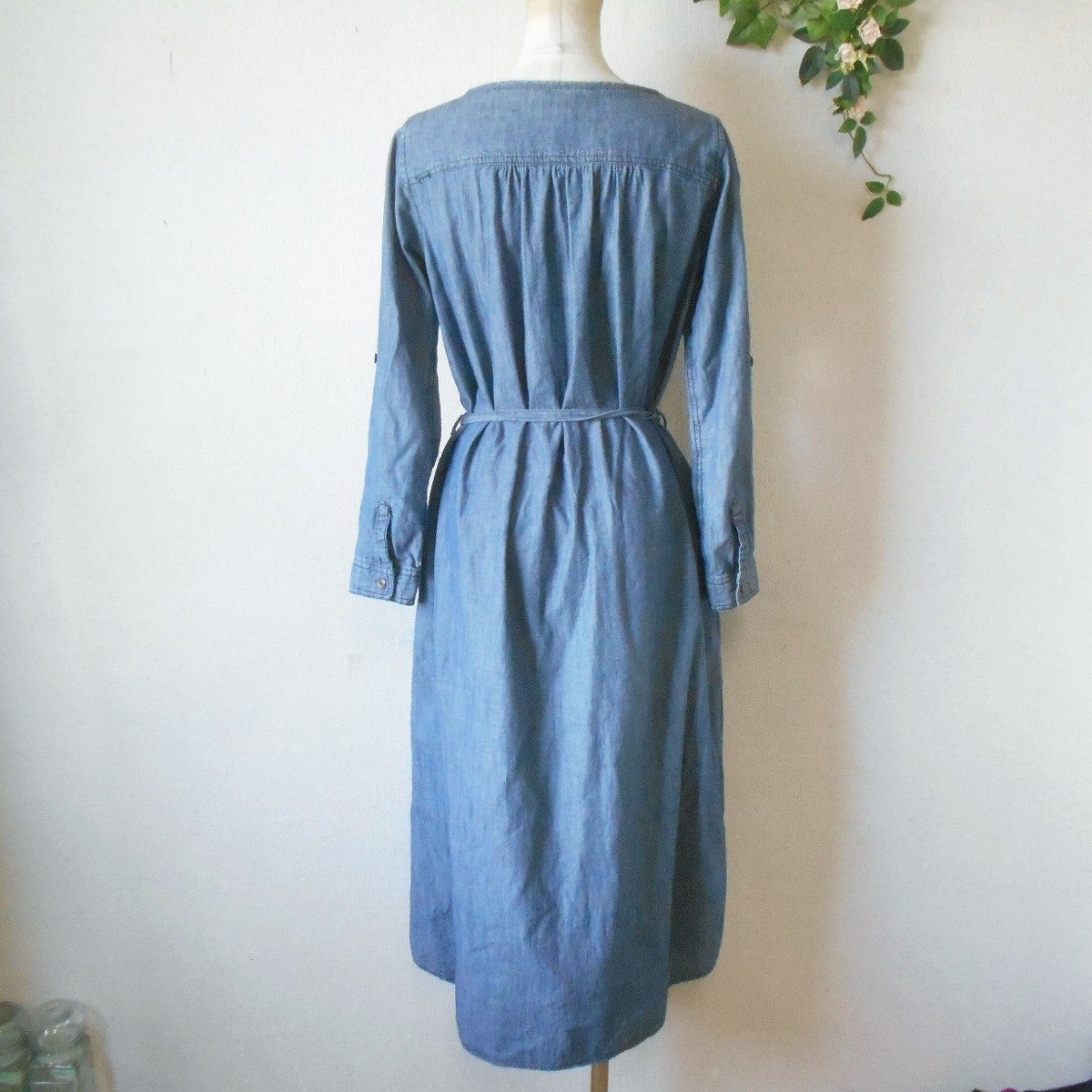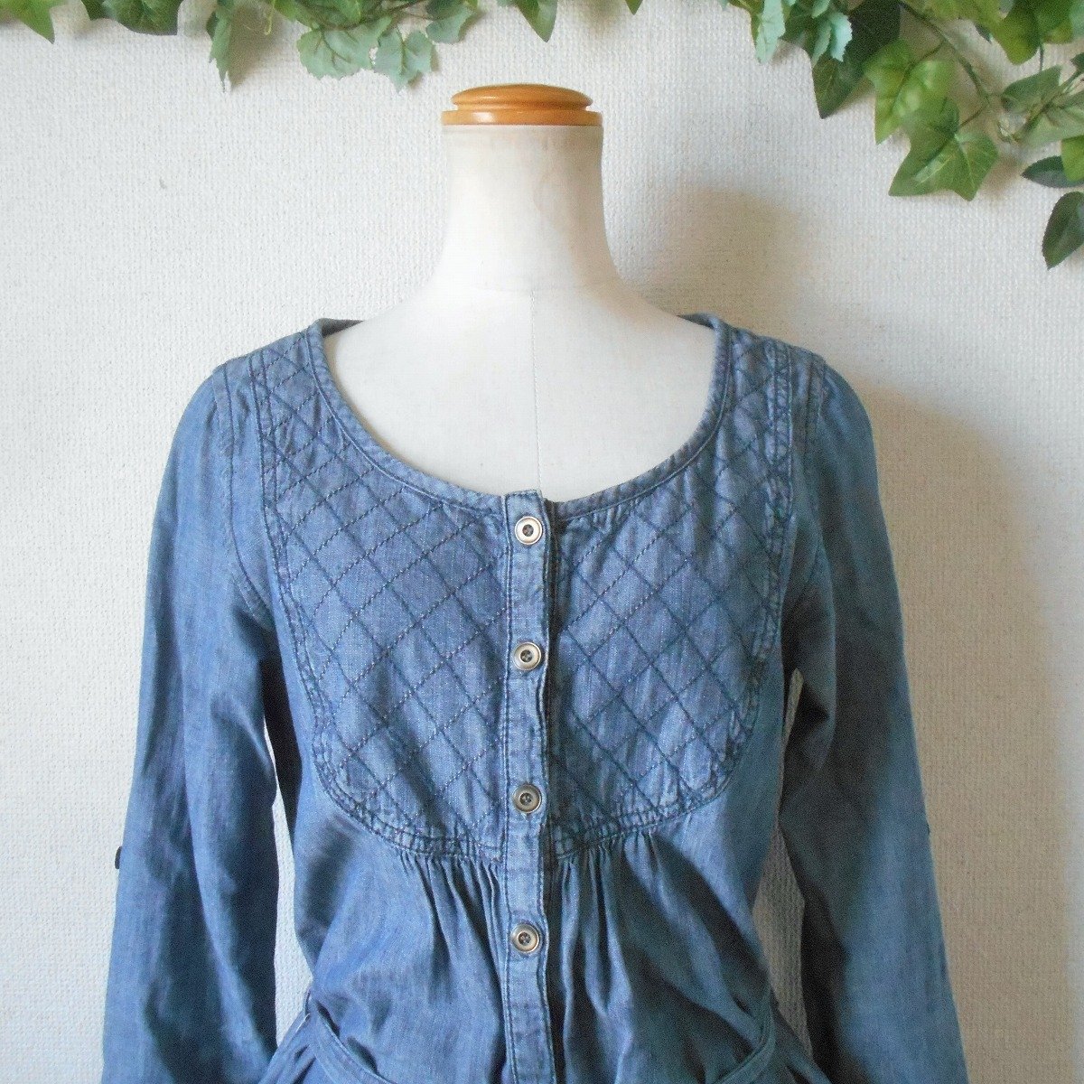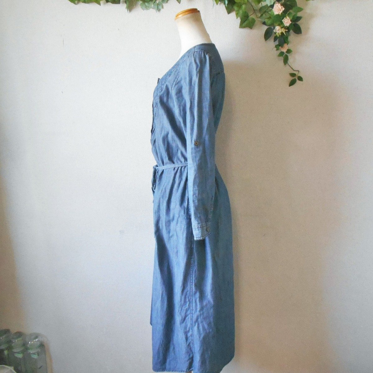 【ポイント】ショコラフィネローブのワンピースになります。お色はブルー系で春や秋を中心に着ていただけるお品です。ウエスト部分でリボンが結べるデザインでとっても可愛い一着です。