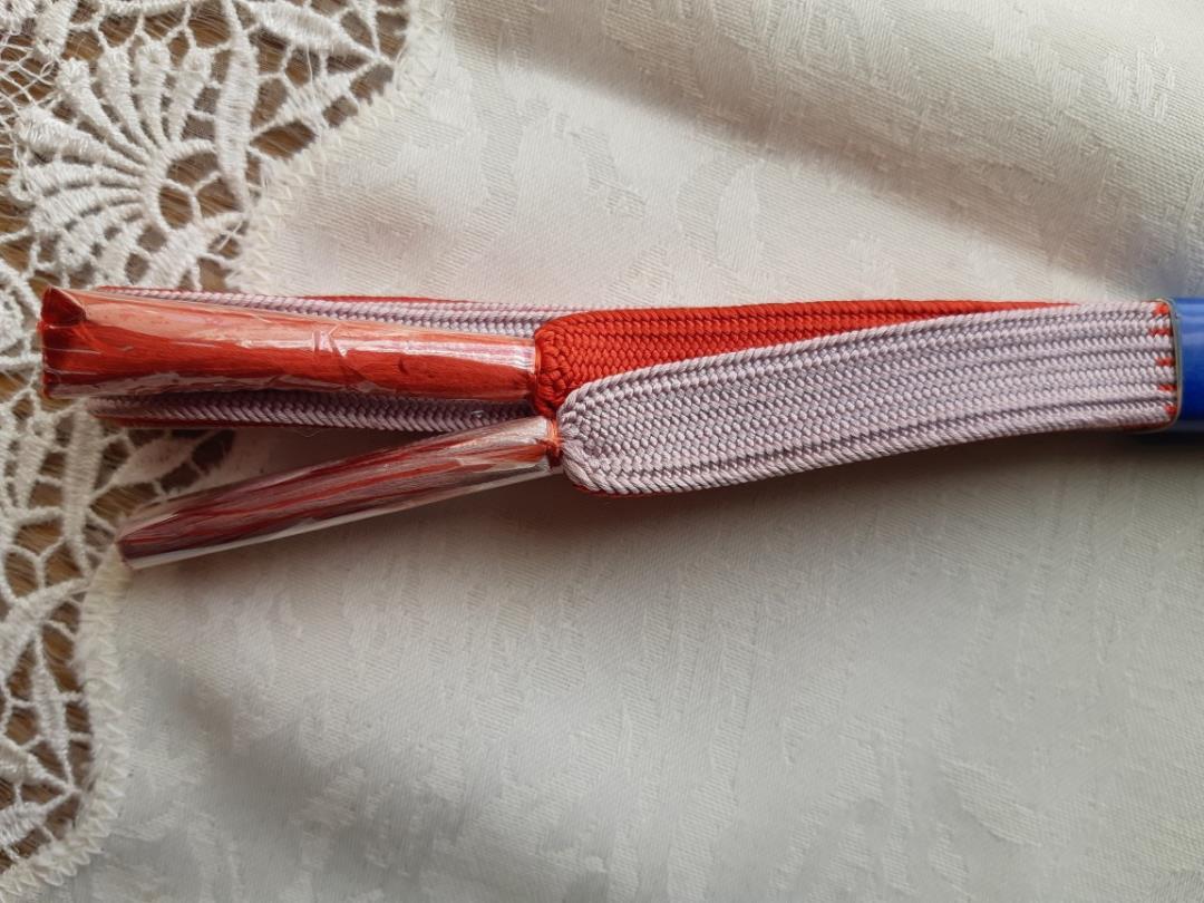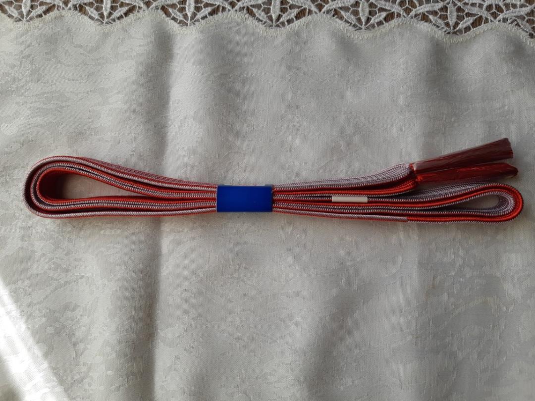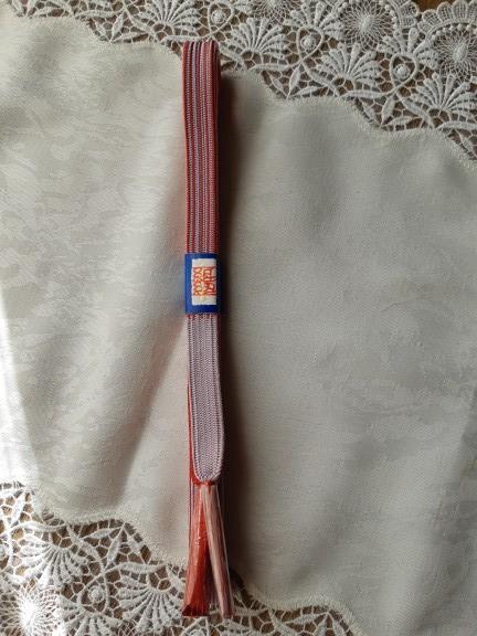 赤系(エンジ)とピンクのコンビの帯締め (組紐)です。