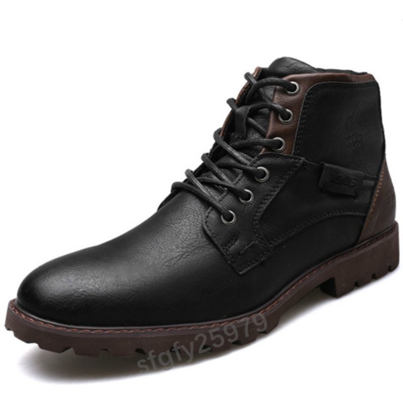 K406☆新品メンズ ショートブーツ 革靴 ミリタリーブーツ ワークブーツ 作業靴 エンジニアブーツ マーティン靴 ブラウン 25.5cm