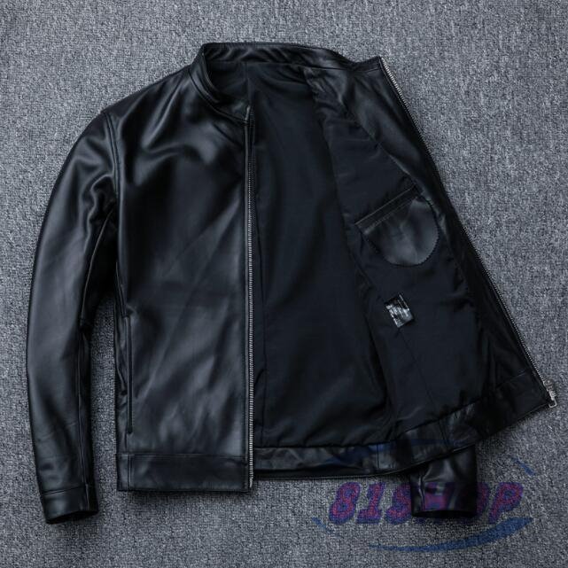 「81SHOP」 新作■ シープスキン スタンドカラー シングルライダース レザージャケット ブラック サイズ イタリアンレザー ラム 羊革