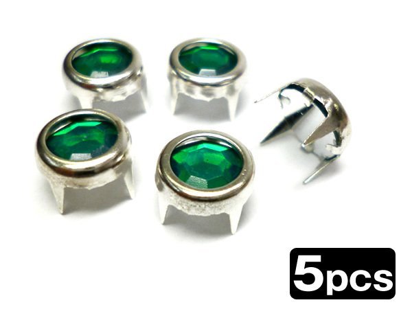 ビジュー 緑 ラインストーン付き スタッズ【13】5個セット メール便/12К