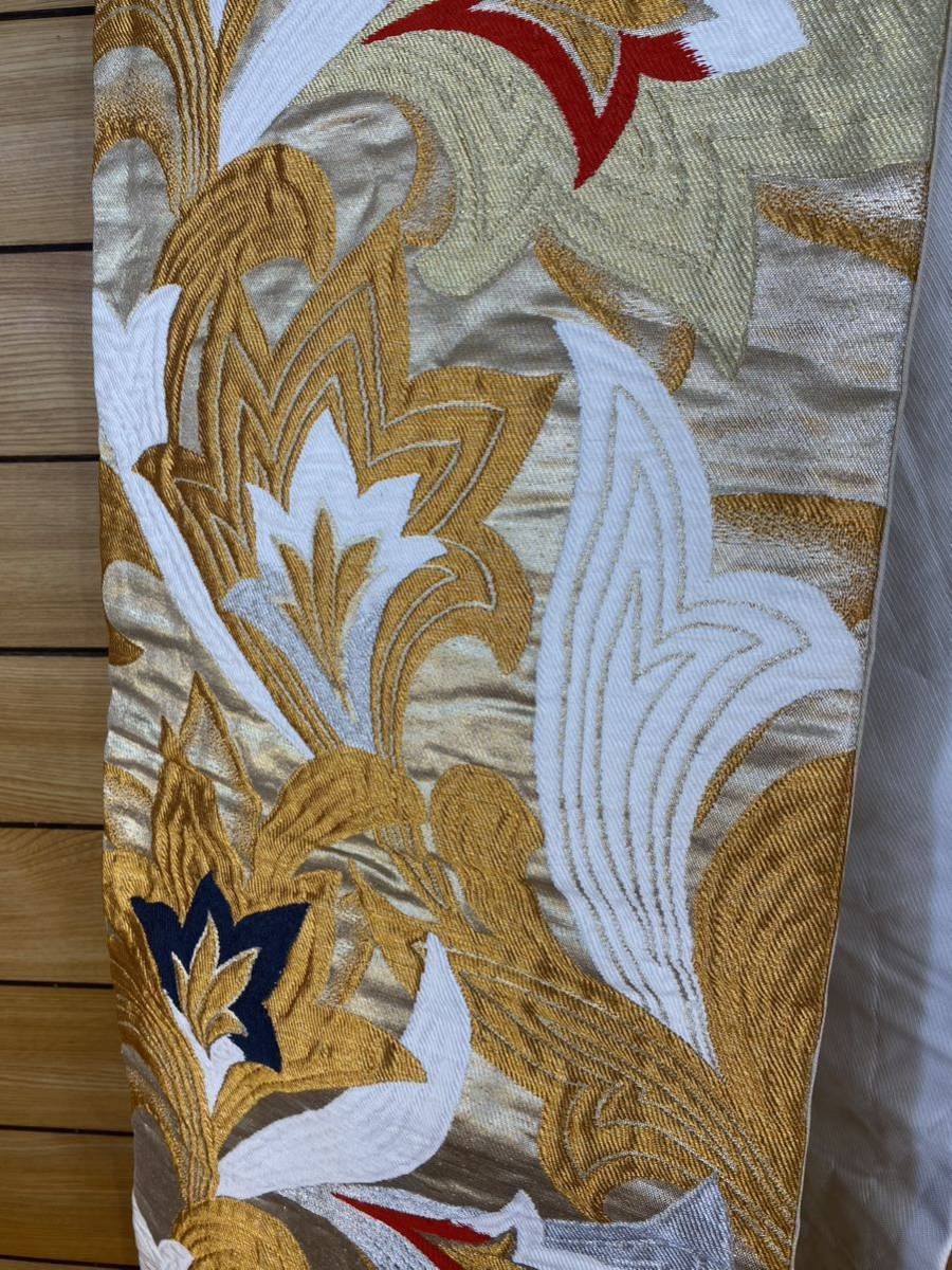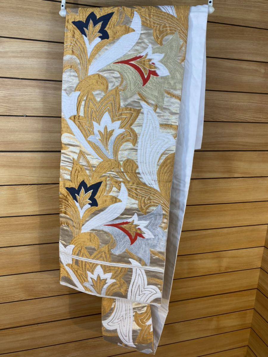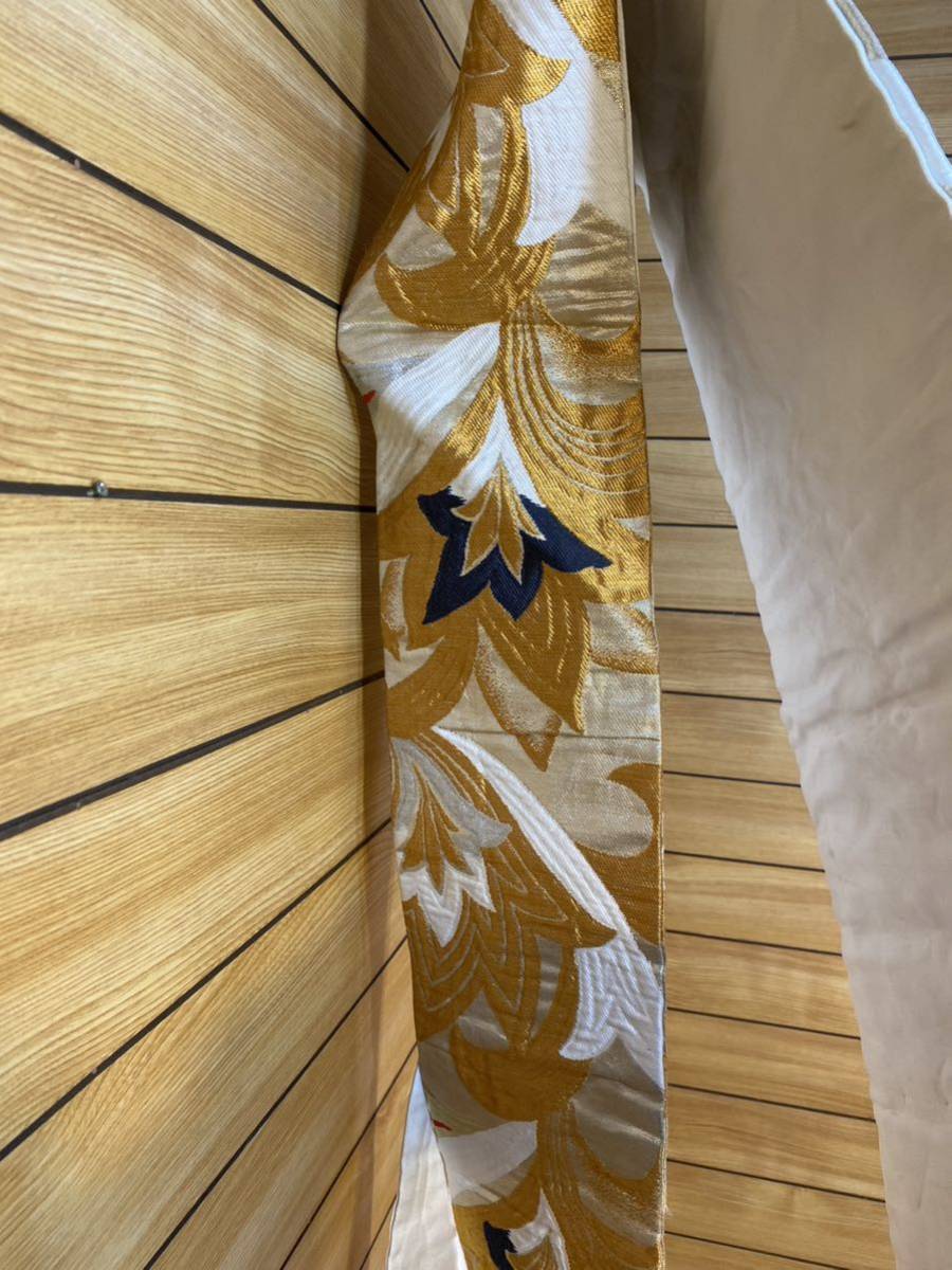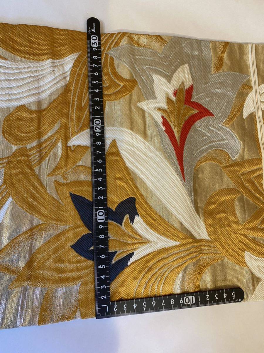 金襴 名古屋帯 正絹 327cm 錦織 唐織 一重太鼓 六通柄 金銀糸