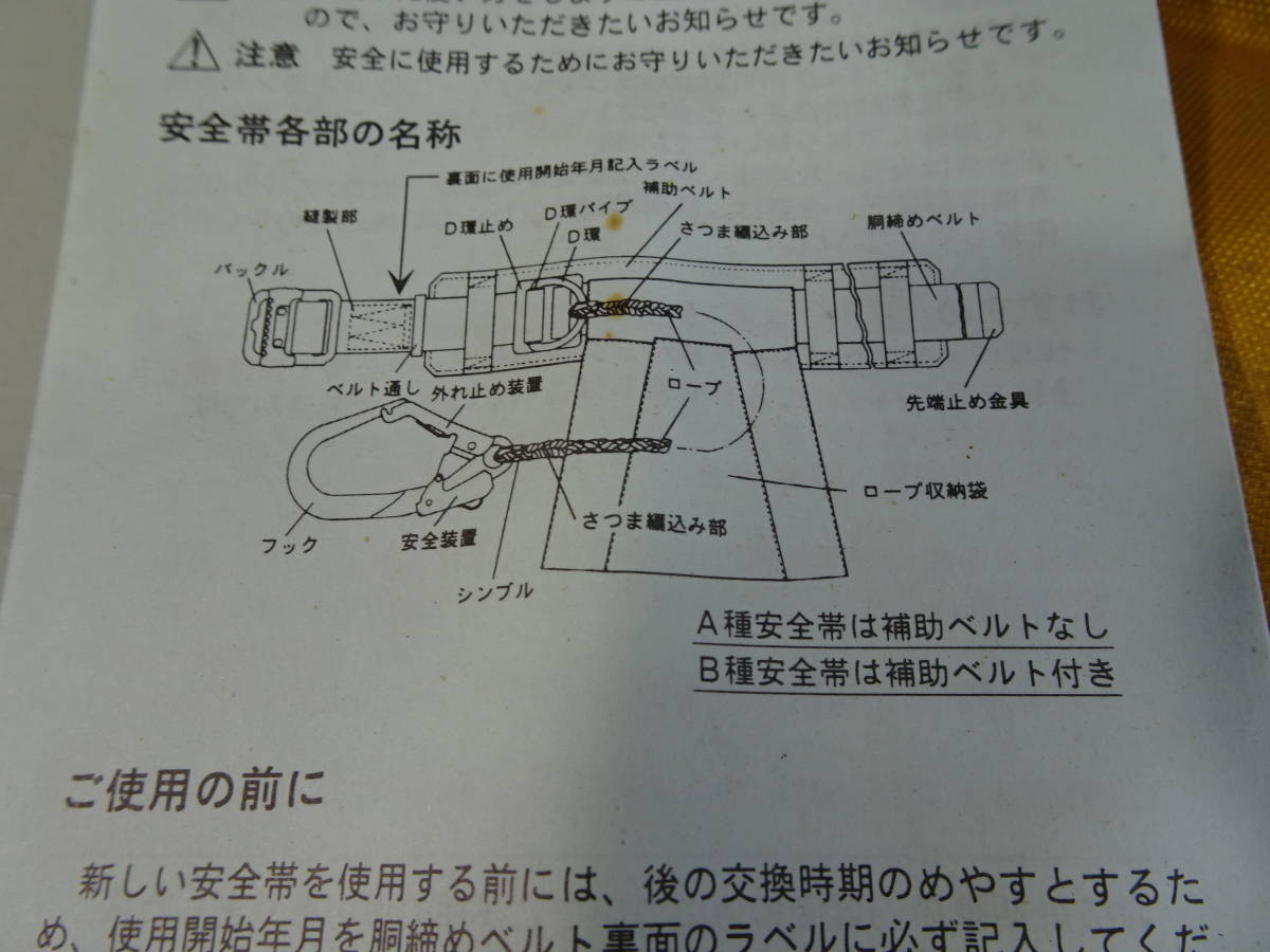谷沢製作所 11年9月製造 510ESR-50Bタニザワの安全帯 1本吊専用 中古