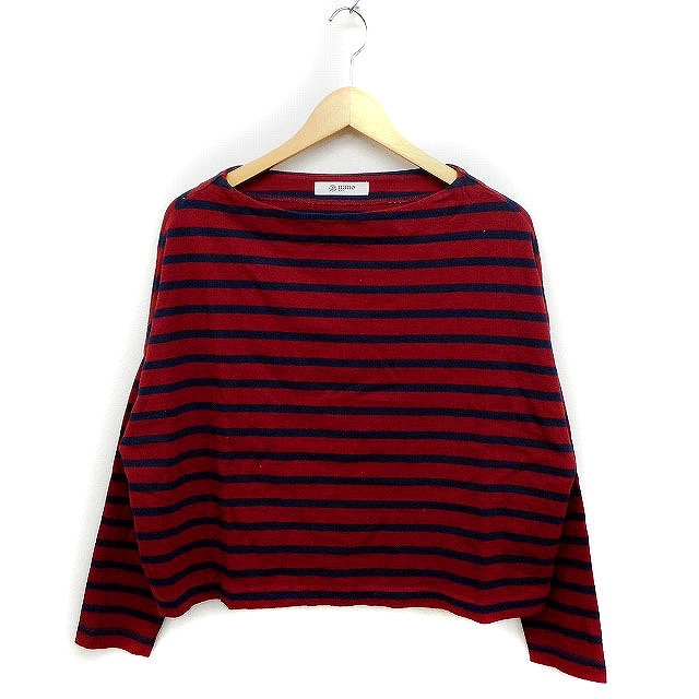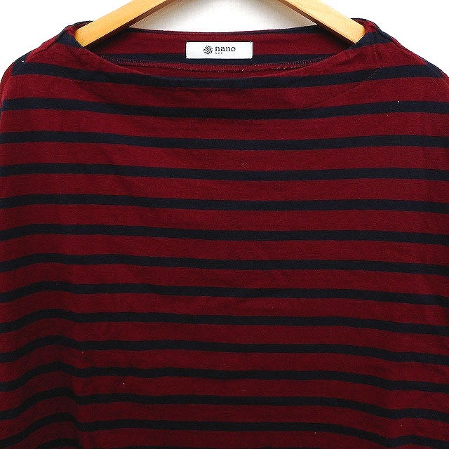 ナノ&コー nano&co ボーダー柄 長袖 カットソー Tシャツ ボートネック コットン 綿 F レッド 赤 /FT46 レディース