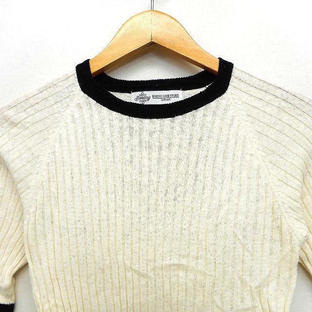 ビーミングバイビームス B:MING LIFE STORE by BEAMS リブ カットソー ライン シンプル 五分袖 丸首 ライトベージュ /HT27 レディース
