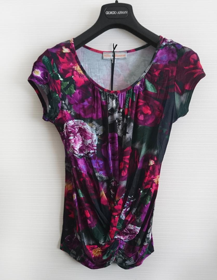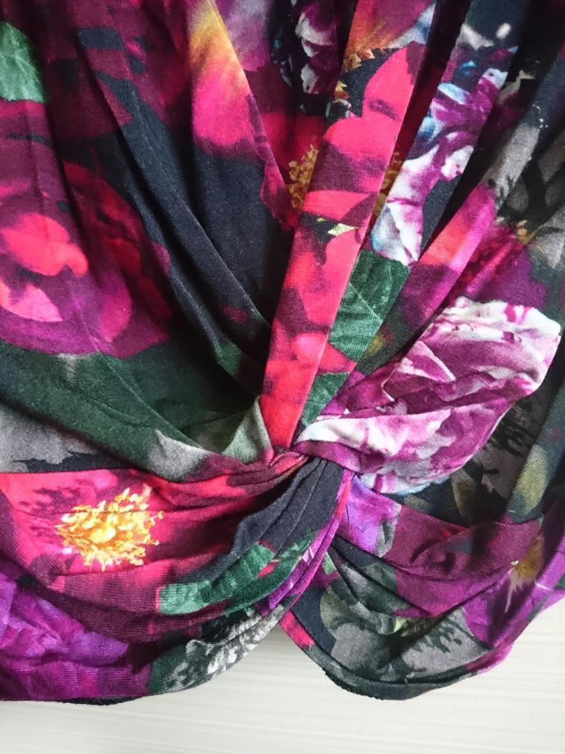 イギリス インポート 英国 BILLIE&BLOSSOM 華やかな花柄トップス UK8(日本サイズ9号程度) キャップスリーブ ドレープ ダークローズ柄