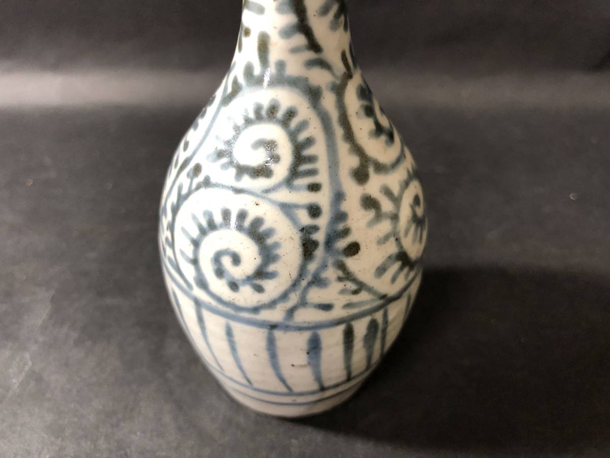 古伊万里 染付 蛸唐草文様 たこ唐草文様 鶴首徳利 小 骨董美術 骨董雑貨