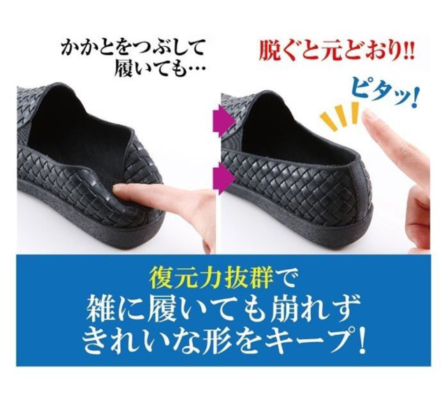 復元力も抜群でかかとをつぶして履いても、脱ぐと元通りに。崩れずにキレイな形をキープします。