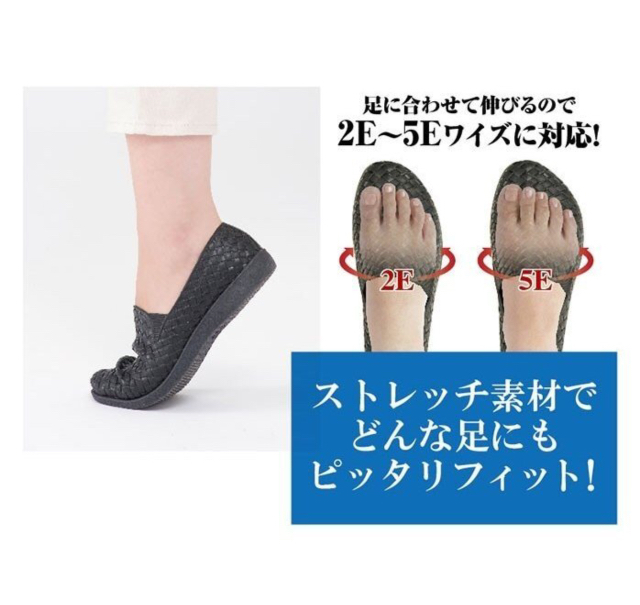 さらに、ストレッチ素材で足に合わせて伸びるので、2E~5Eワイズまでどんな足にもピッタリフィット。