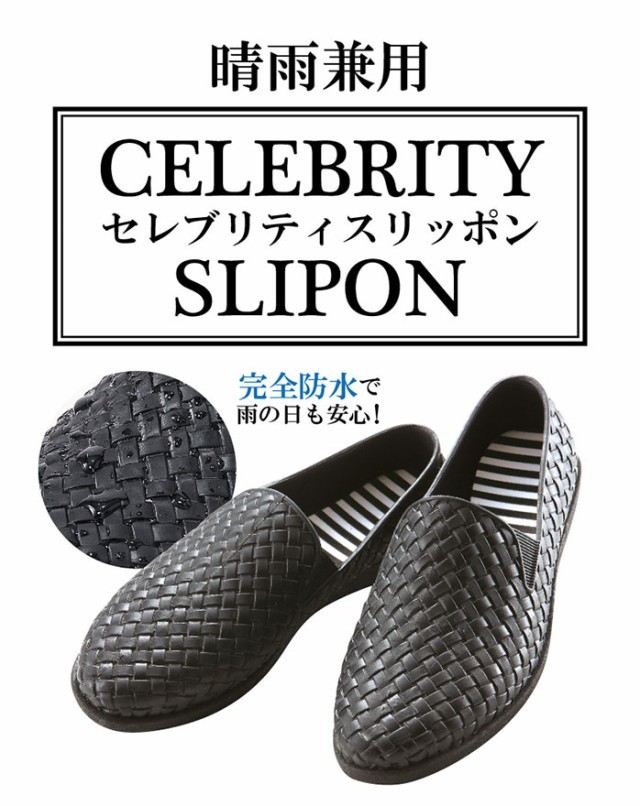 スリッポン 黒 主婦のお悩み解決 セレブリティスリッポン 晴雨兼用 レインシューズ 梅雨対策 雨の日 つゆ 雨