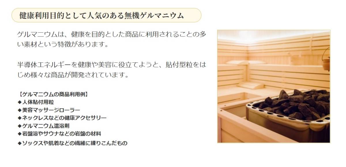 ※お興味のある方はご自身でネットでゲルマニウムの効果を検索をしてください。