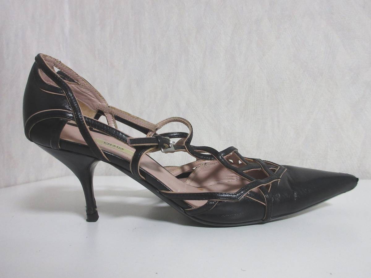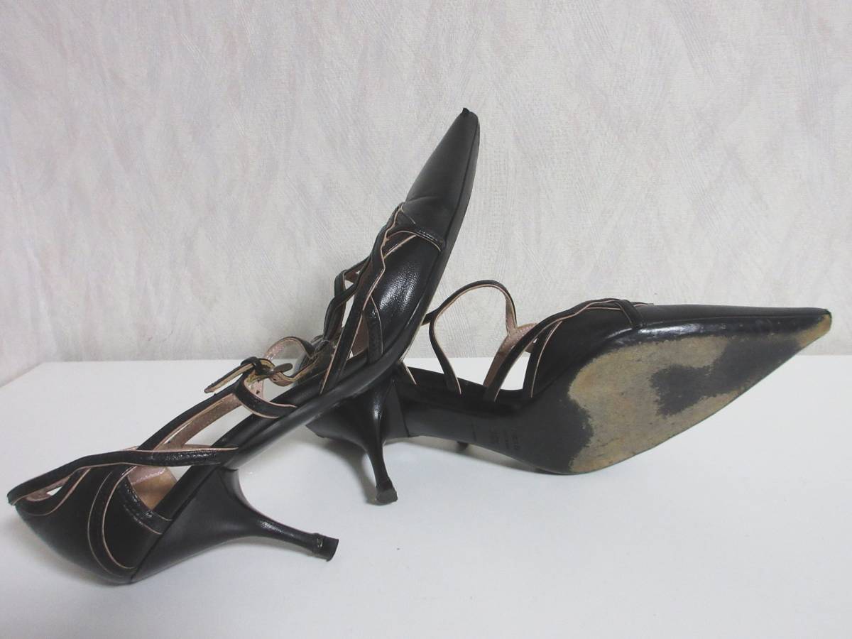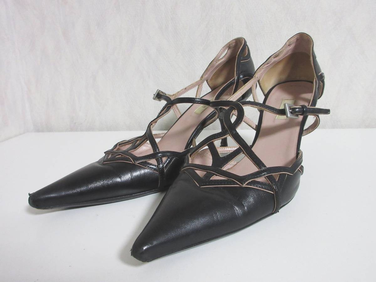 プラダ PRADA レザー パンプス ポインテッドトゥ 黒 ブラック 36 1/2 北6003