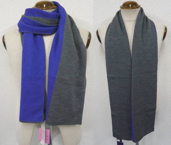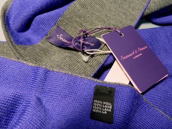 新品 シーワード&スターン(英) ウール素材ニットマフラー グレーxパープル リバーシブル ユニセックスでも 定価2万円