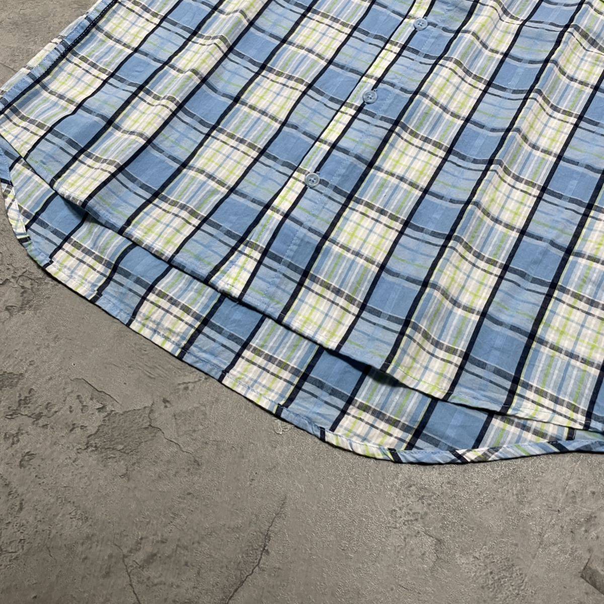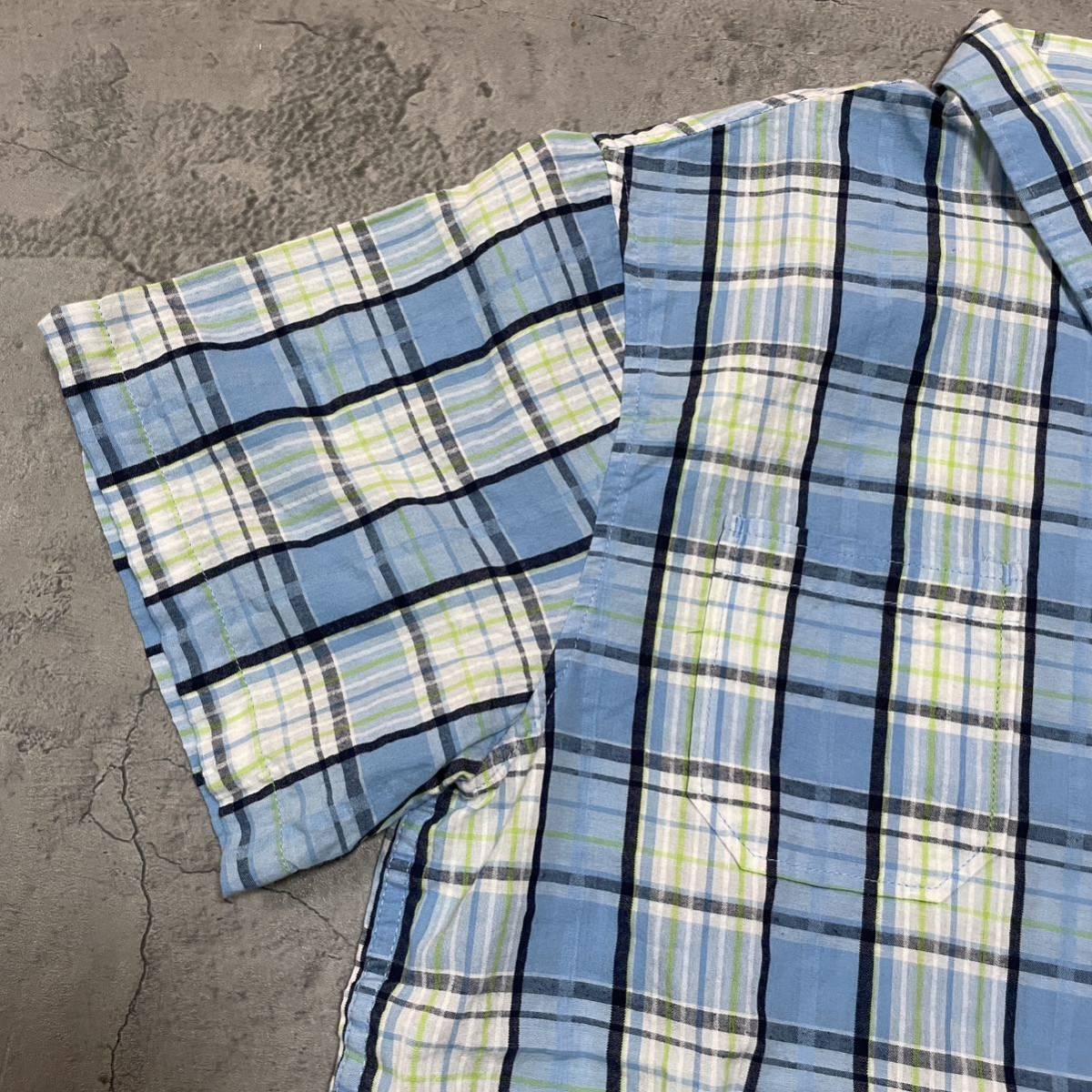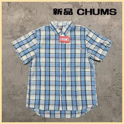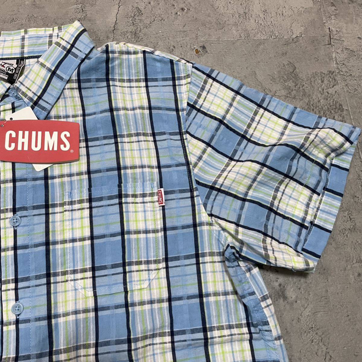 新品定価8690円 CHUMS チャムス シャツ 半袖 チェック柄 ポケット付き アウトドア コットン ブルー サックス サイズM 玉FL2824