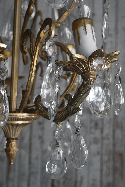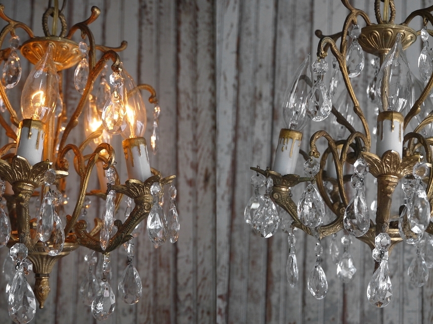 | 商品説明 岡山STAGEより出品します。アメリカで買い付けたアンティークのシャンデリアです。画像のようにモダンで繊細なフォルムのブラスベースにガラス装飾が付いた存在感のある大変おしゃれなシャンデリアです。小型シャンデリアは希少なサイズですのでショップ等の雰囲気作りに最適です。電球は付属しませんが市販のE12mm口径の一般的なタイプですのでご用意ください。状態ですが、経年による金属劣化や錆、小傷や擦れ、汚れ、塗装の剥がれ、歪み、ガラスに小傷等の使用感はございますが雰囲気を損なうようなダメージはなくアンティークならではの良い状態かと思います。あくまでアンティークになりますのでご理解いただける方のご購入をよろしくお願い致します。 サイズ 高さ約33cm、直径約26cmです。 予定発送方法 保障の利く佐川急便の元払い140cmサイズ料金で行います。 コメント コンセント式ですので別途735円でシーリング式への交換と長さ調節もいたしますのでお気軽にご相談ください。(現状チェーンは約80cmです。切り縮めは無料、延長の場合は要相談)店頭でも販売しております。タッチの差で売れた場合はご了承下さい。■落札後の連絡及びご質問の返答は基本的に午前10時~午後6時までとさせて頂きます。毎週水、木曜日、年末年始や時間外でのご連絡は休み明け及び翌日のご連絡となりますので予めご了承下さい。 STAGEホームページ https://stage-stage.ocnk.net// |
