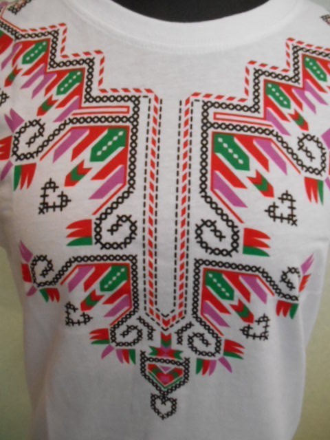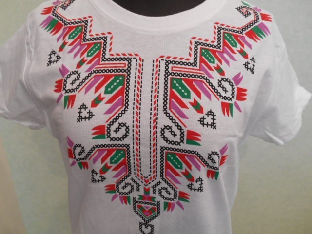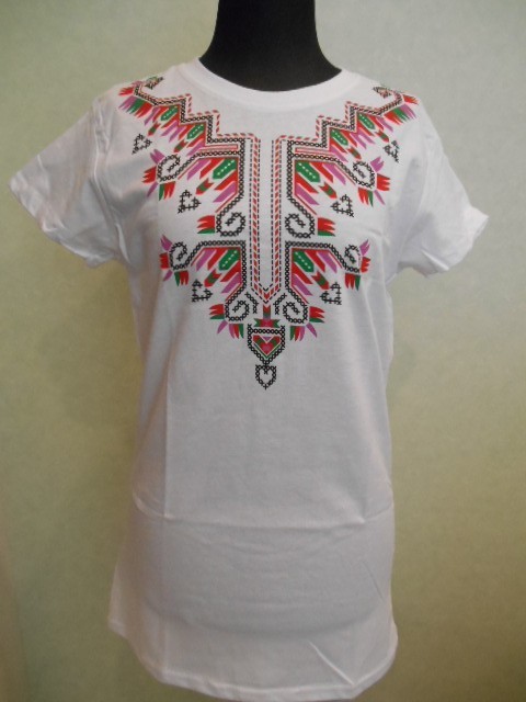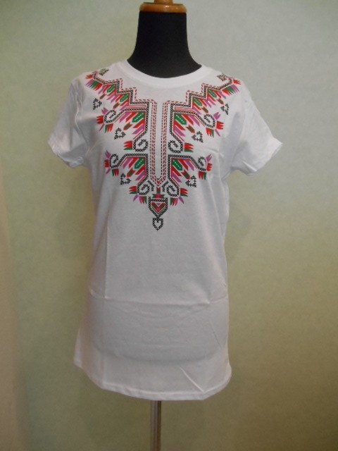 ブルガリアの民族衣装などで有名な赤い刺繍のモチーフをプリントしたTシャツです。