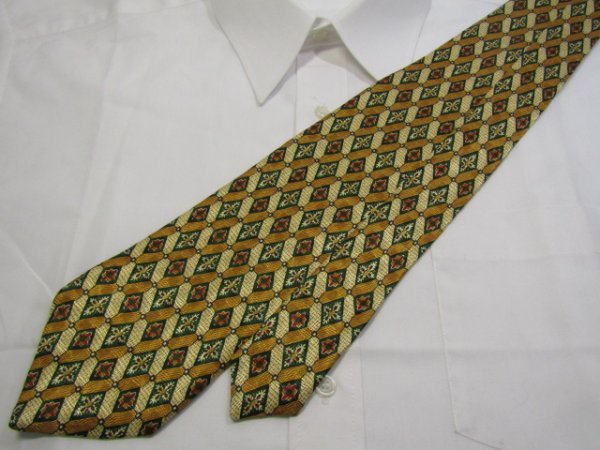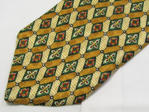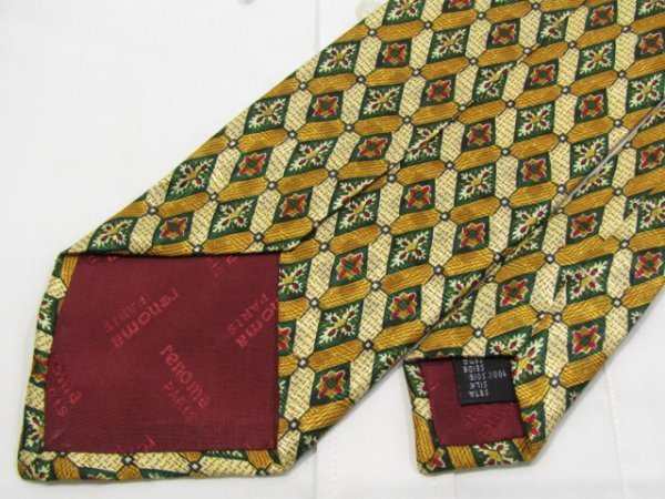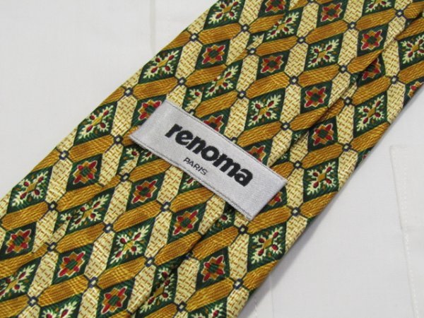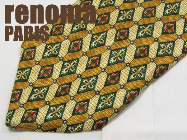 AA 130 レノマ renoma PARIS ネクタイ ハンドメイド 黄系 光沢 花柄プリント 格子柄 小紋柄 スクエアジャガード