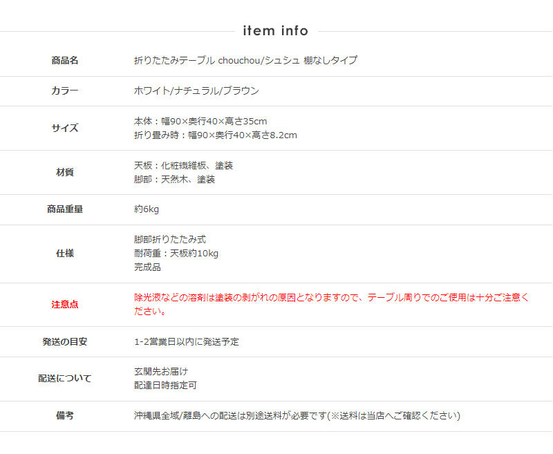 | ※除光液などの溶剤は塗装の剥がれの原因となりますので、テーブル周りでのご使用は十分ご注意ください。 |