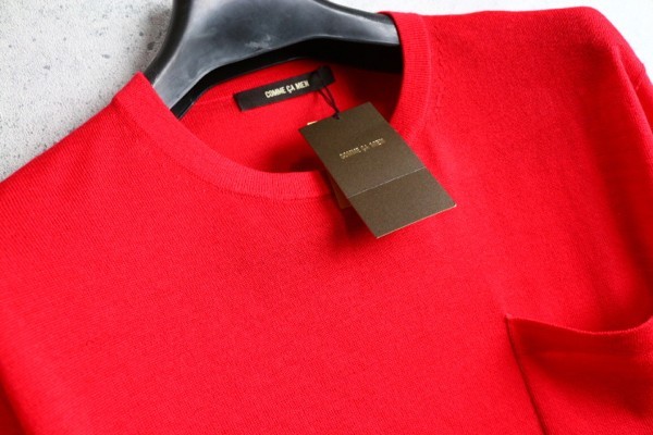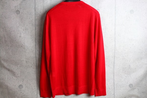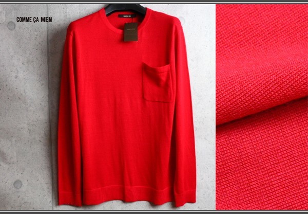 新品 コムサメン 上質艶感 ウール100% ニット ハイゲージ クルーネック セーターM赤/定価1.4万円/COMME CA MEN