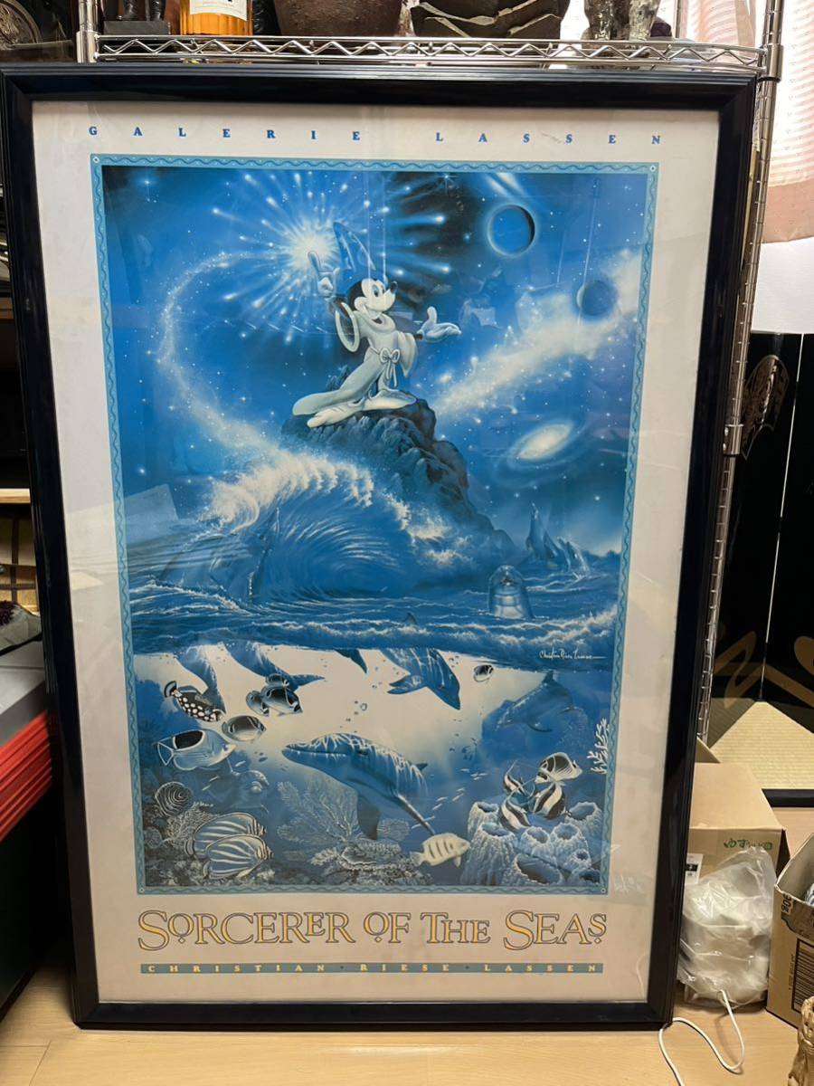 クリスチャン・リース・ラッセン ポスター ミッキーマウス SORCERER OF THE SEAS 額装 96×66cm 特大 額付き