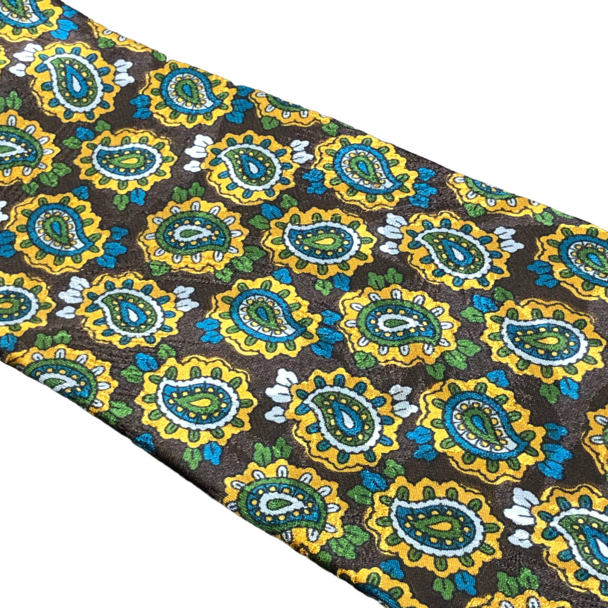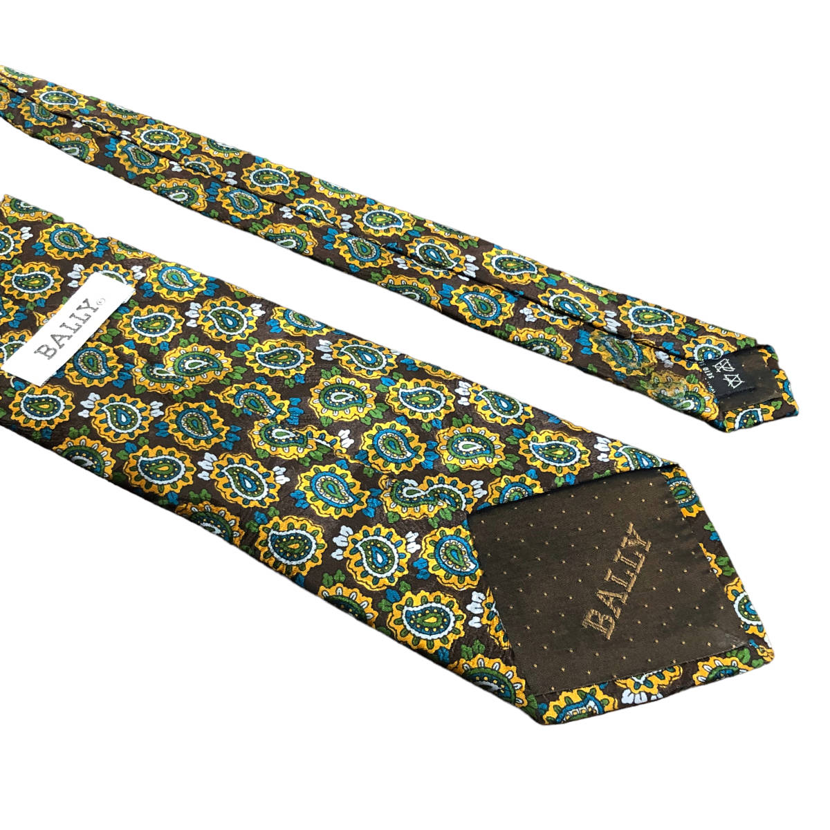 BALLY バリー ネクタイ ペイズリー柄 シルク 茶 緑 TA1