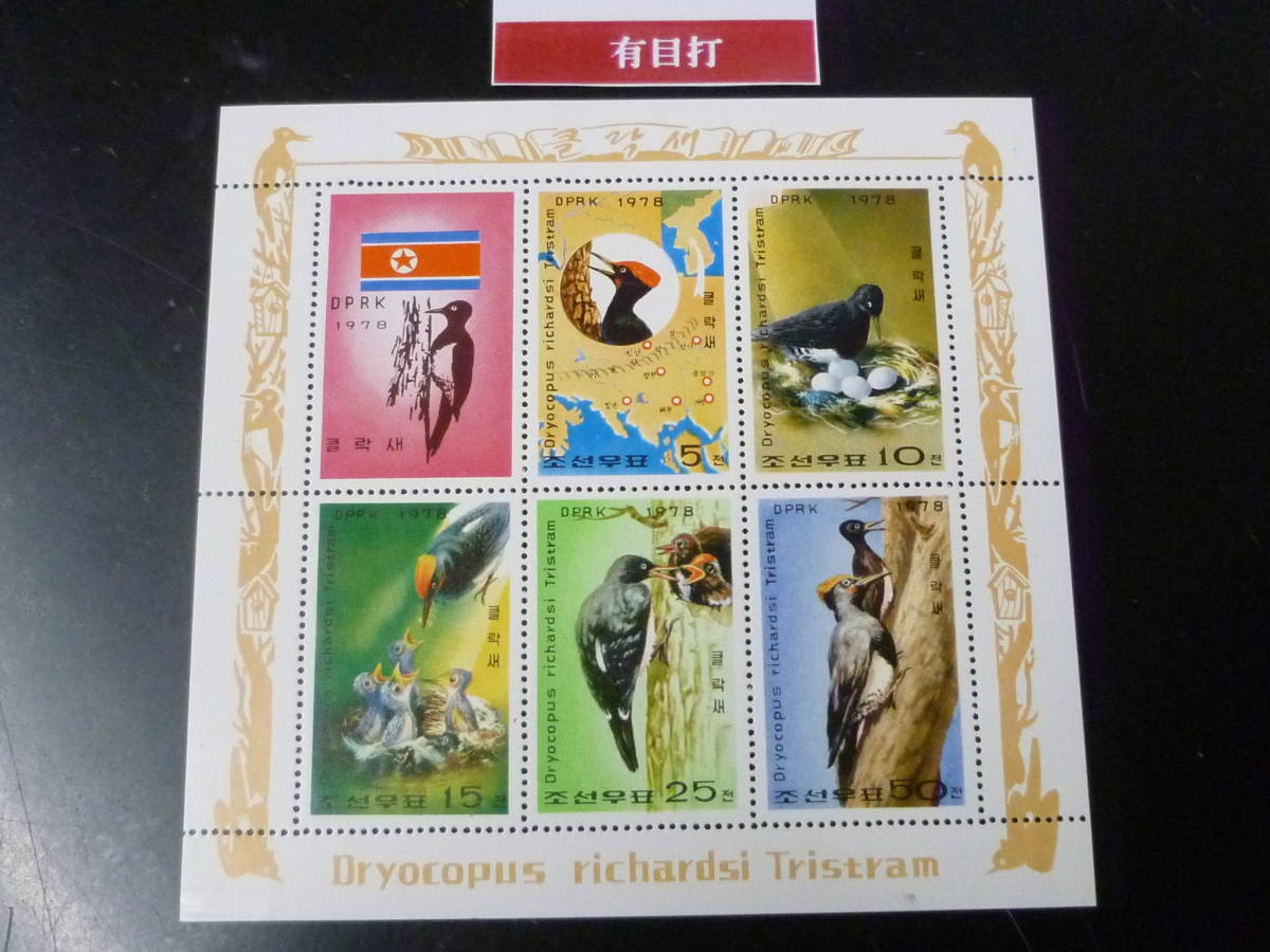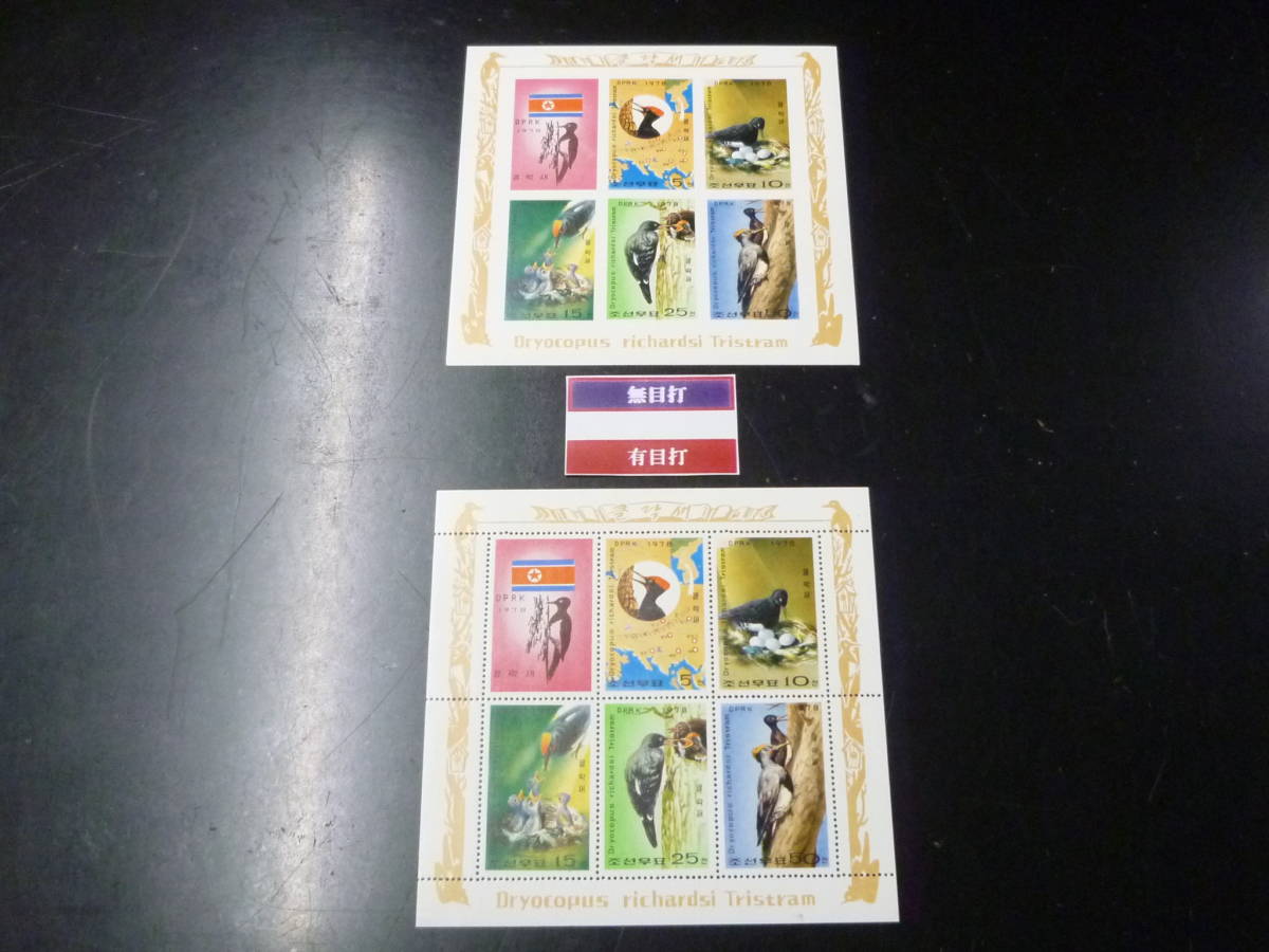 23L P 北朝鮮切手 無目打・有目打 1978年-5 SC#1755a 鳥 タブ付6面シートレット 計2種 未使用NH・VF ※説明欄必読