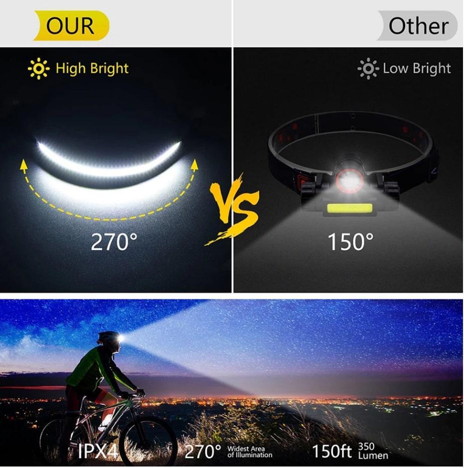強力LEDヘッドライト! USB-C 充電式 センサースイッチ付き!キャンプ サイクリング ランニング 夜釣り 夜間工事に 強力ヘッドランプ