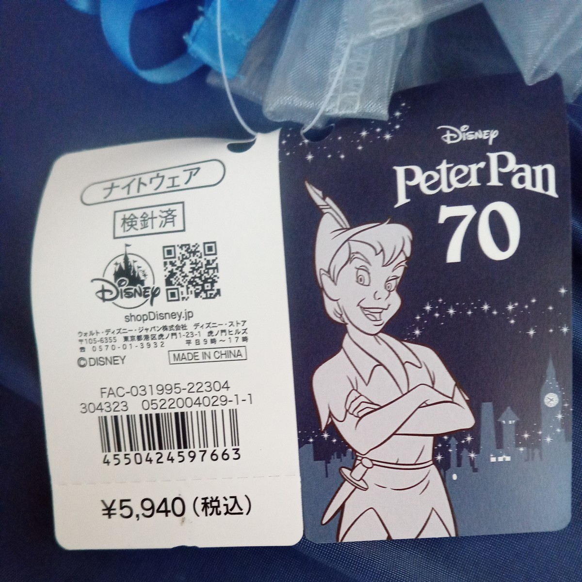 ディズニーストア限定のピーターパン70周年のナイトウエアになります