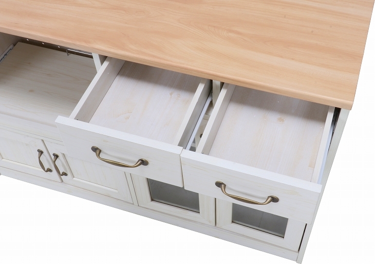 隠れキャスター付きで移動も簡単なシンプルなキッチンカウンター。