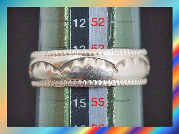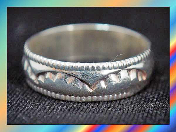 スターリングシルバーにナバホ族特有の紋様をハンドスタンプした見事なハンマーワーク!