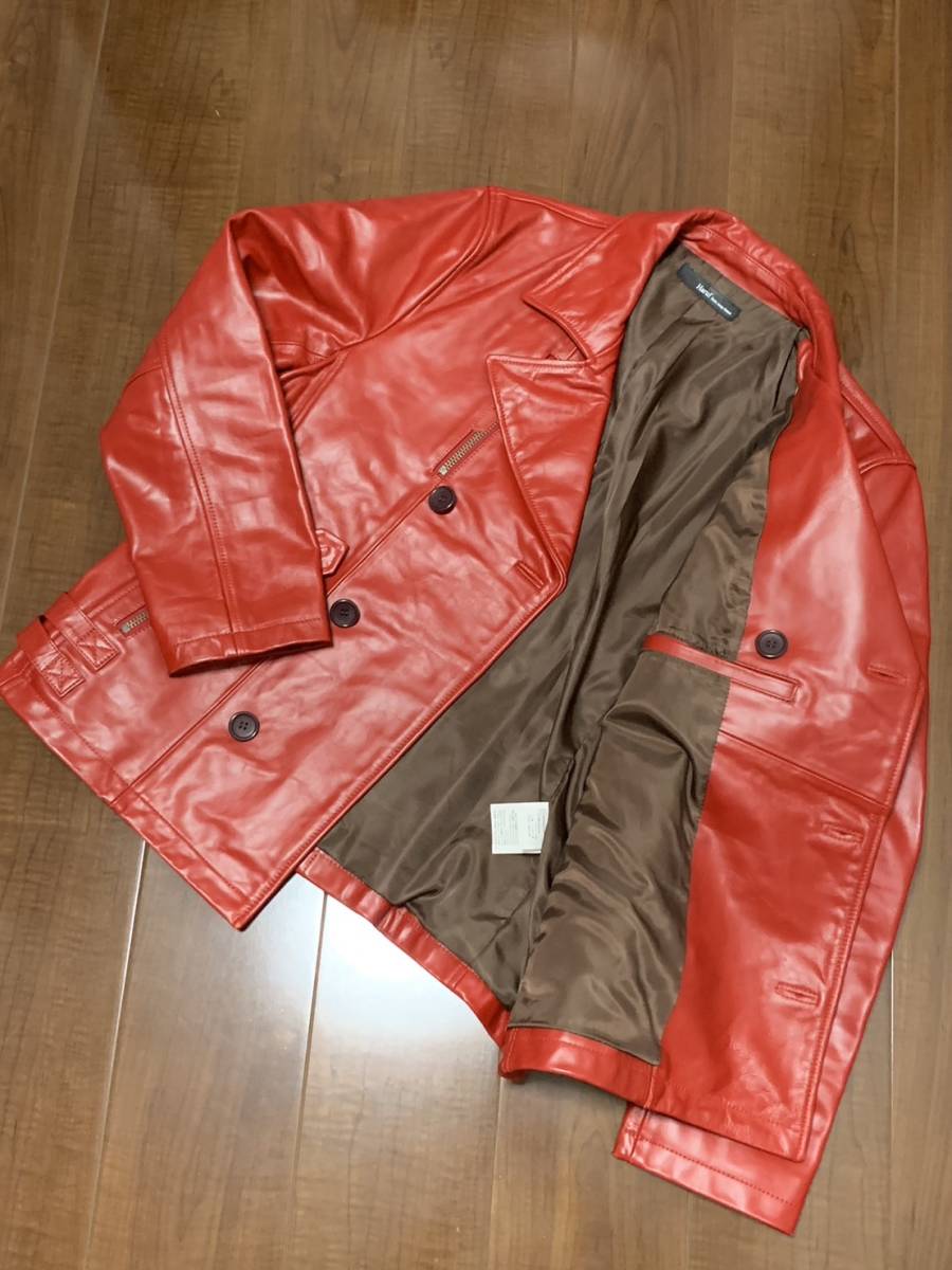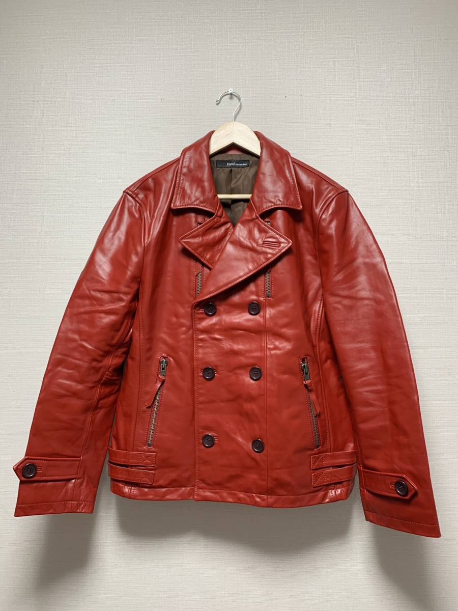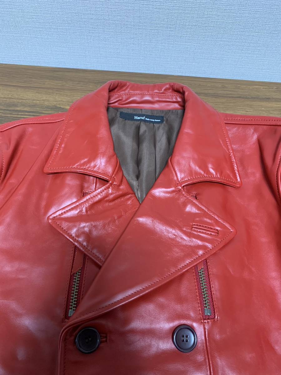 美品☆3L [Haruf] カラーレザージャケット ピーコート 3L 牛革 レッド 赤 ハルフ