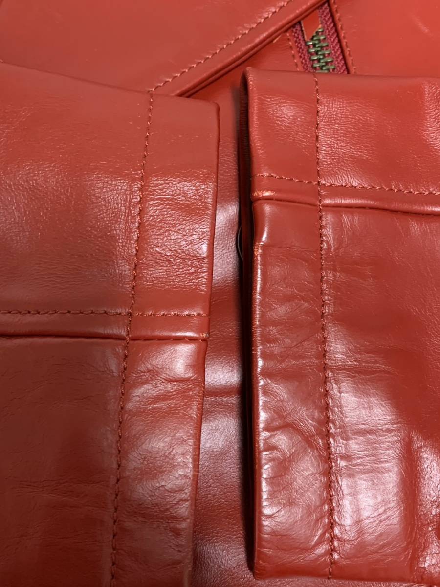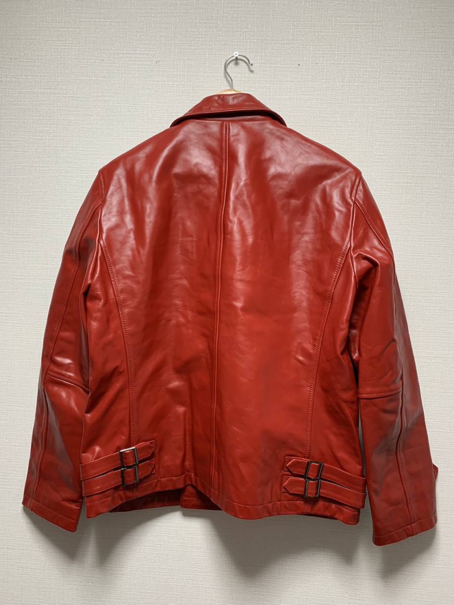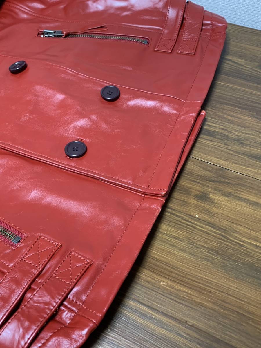 美品☆3L [Haruf] カラーレザージャケット ピーコート 3L 牛革 レッド 赤 ハルフ